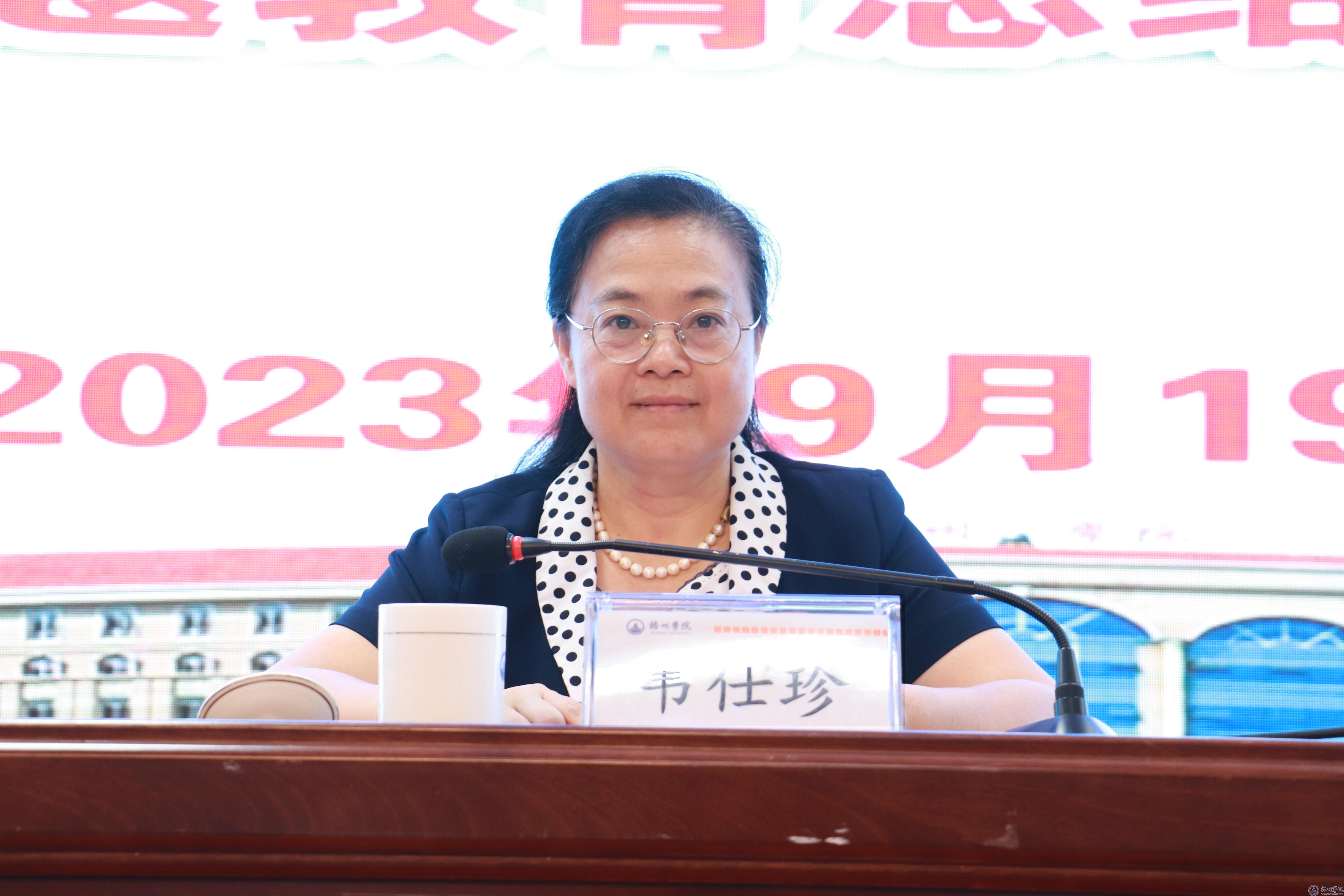 校党委书记韦仕珍代表学校党委全面总结了学校开展主题教育的做法、成效以及下一步工作的重点任务,并在会上通报了学校领导班子主题教育专题民主生活会的情况。她表示,自主题教育启动以来,学校党委强化理论学习,推动主题教育入脑入心;精心确定选题,强化问题导向,深化调查研究,推动主题教育走深走实;紧盯问题整改,推动主题教育落实见效。通过主题教育,全校党员、干部和广大师生员工的政治素质、理论水平、能力本领、责任担当、精神风貌、廉洁作风得到全面强化,党对学校的全面领导更加坚强有力。