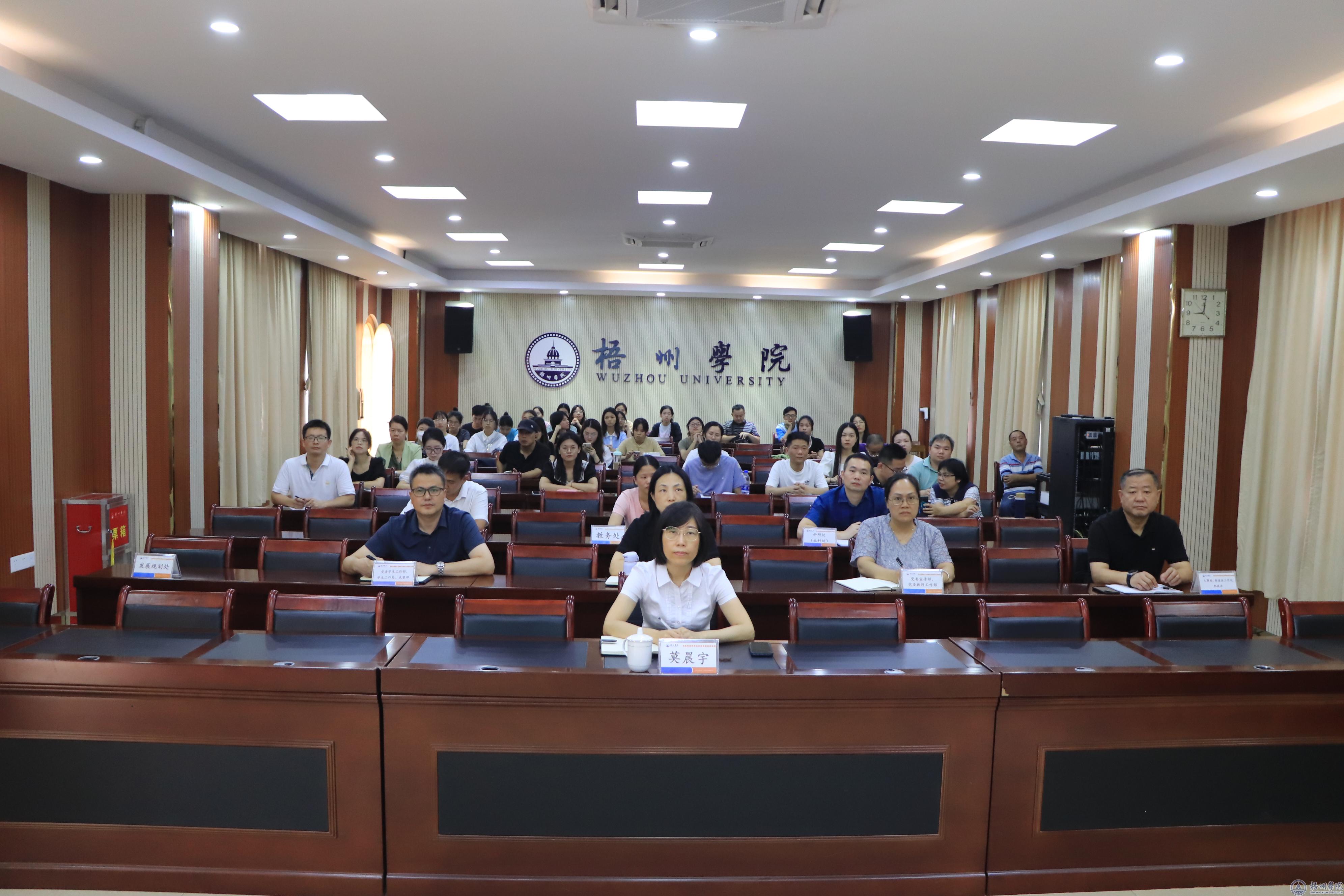 9月6日上午,自治区教育厅在南宁举行“躬耕教坛,强国有我”名师名校长论坛活动。论坛采用线上线下结合的方式进行,自治区教育厅副厅长伍锦昌出席论坛并致辞。学校在明理楼七楼视频会议室设立分会场,学校副校长莫晨宇,相关部门负责人,各二级学院教师代表及师范生代表观看活动。