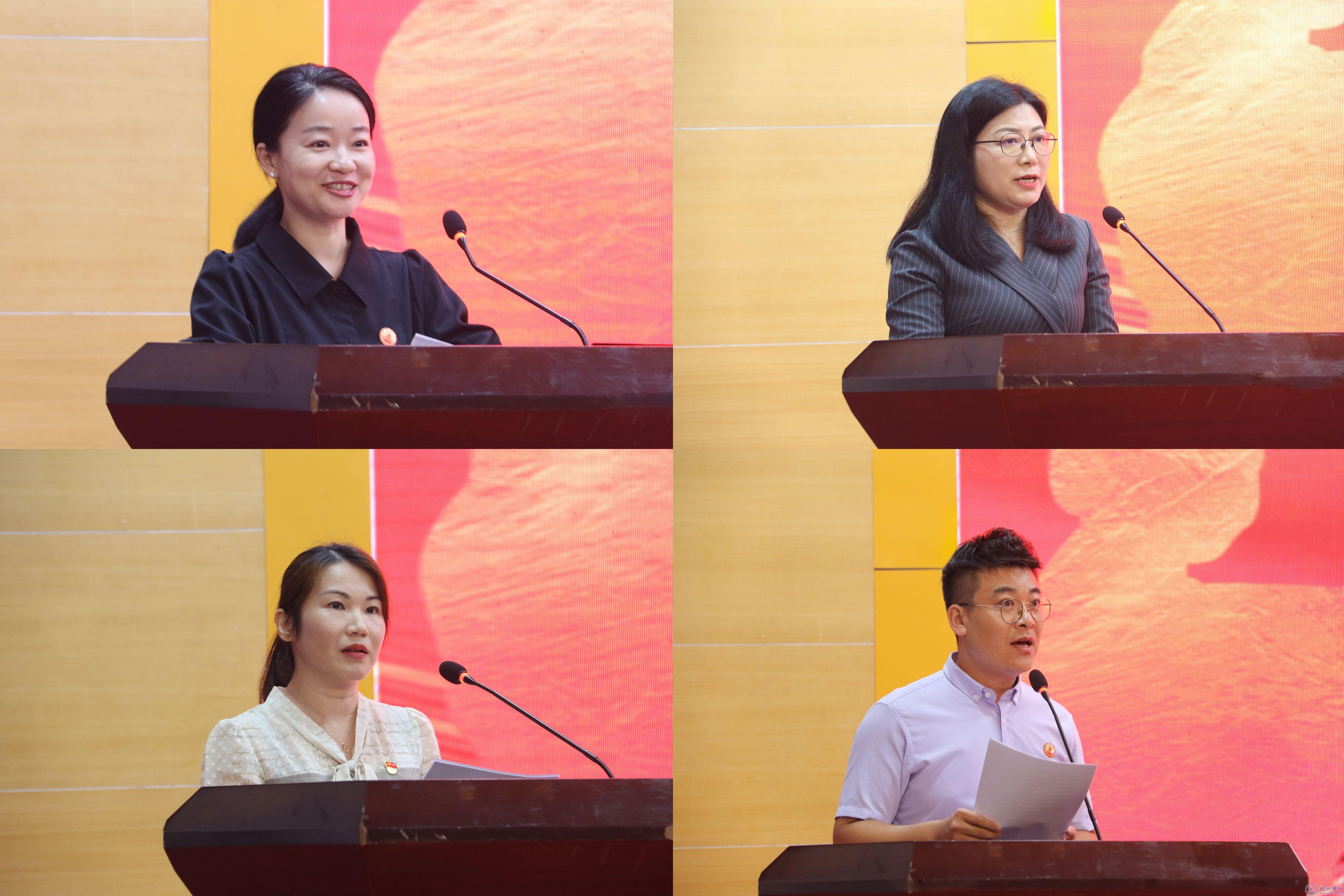 师德报告会上,来自大数据与软件工程学院的邸臻炜老师、商学院的韩永彩老师、电子与信息工程学院的梁韵老师、文学与传媒学院的曹旭老师分别作为教学工作代表、科研工作代表、党务工作代表、学生工作代表作师德报告。他们分别汇报了各自工作的收获与成绩,分享了在工作中对师德的感悟和思考,并表示将始终保持对党、对教育事业的热爱和忠诚,树牢“躬耕教坛、强国有我”的志向,在教书育人的道路上砥砺前行,为学校高质量发展贡献力量。