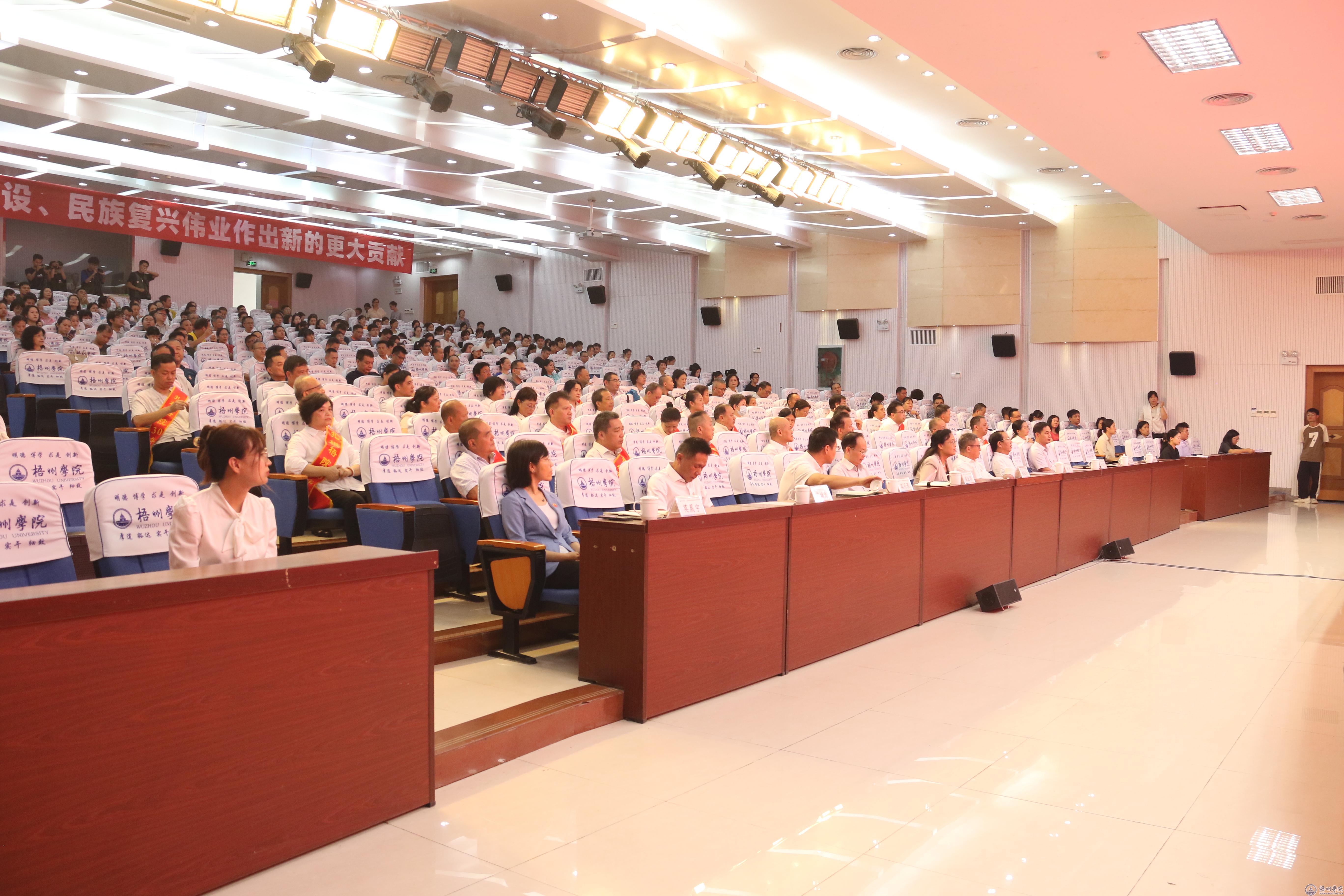 2023年新入职教师、“扎根梧院30年”教职工、以及各单位、部门中层干部、科级干部代表,各二级学院教师、学生代表参加会议。