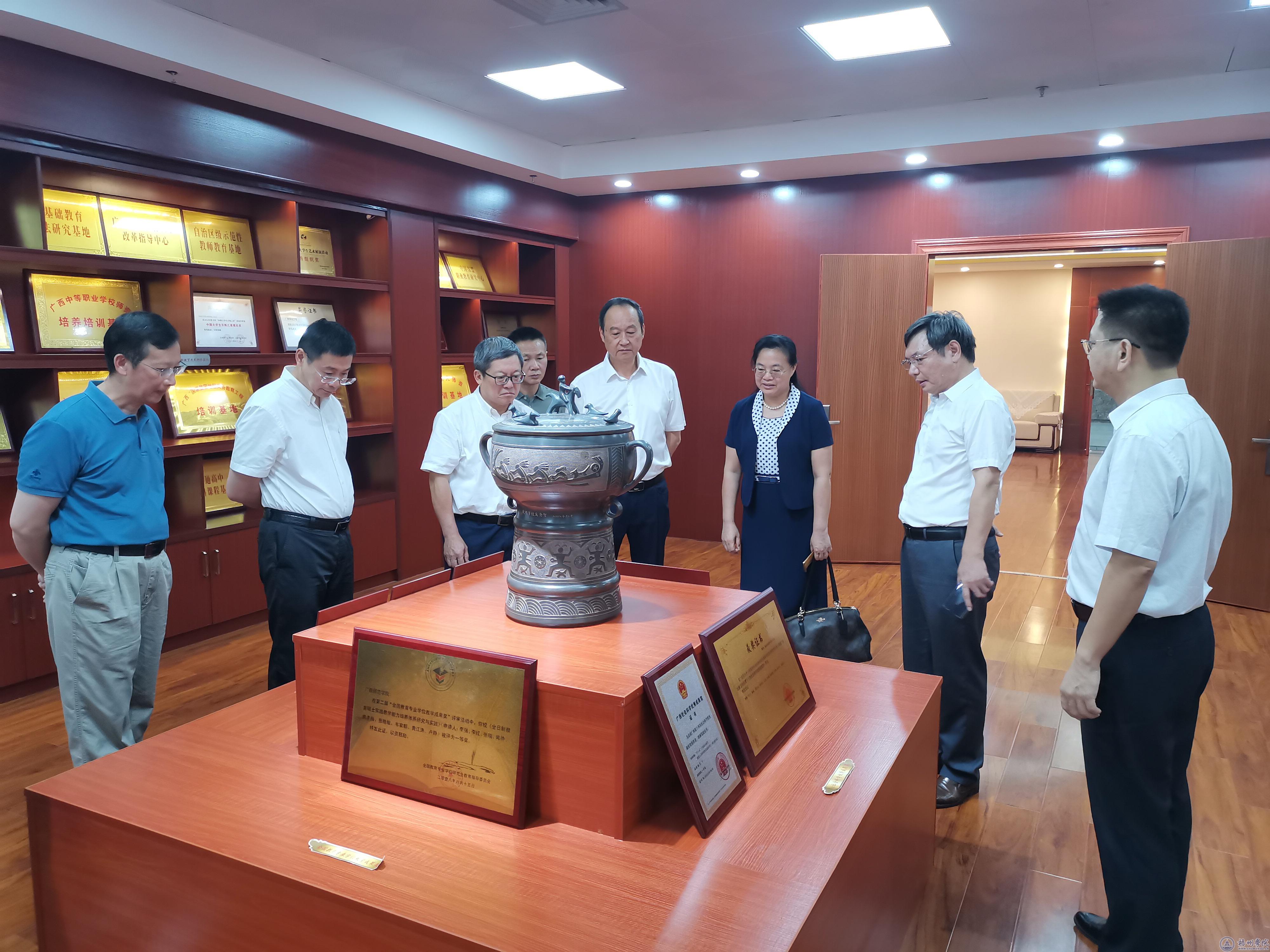 座谈会之前,韦仕珍书记一行参观了南宁师范大学教师教育成果展。