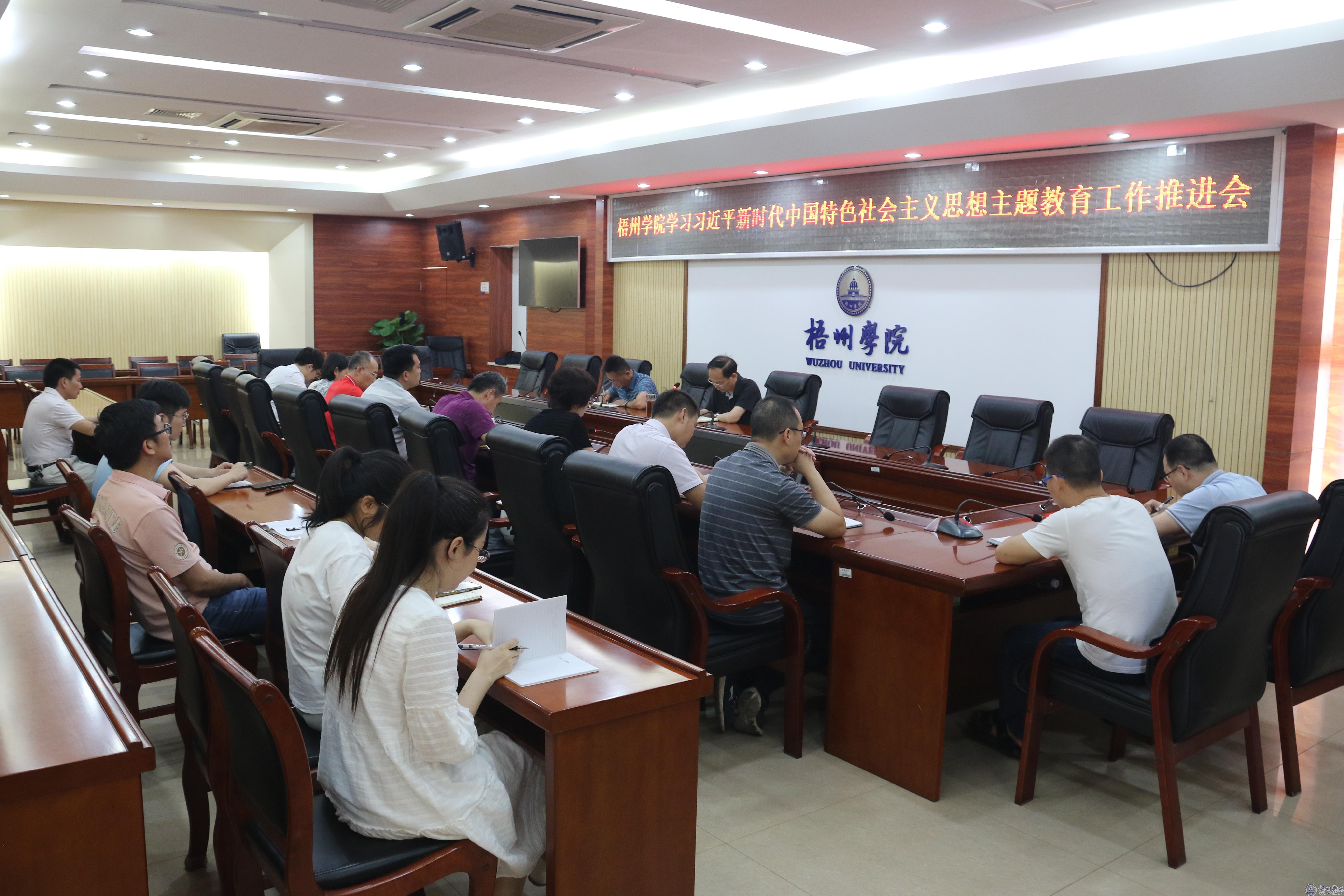 7月5日下午,学校在明理楼八楼第一会议室召开学习习近平新时代中国特色社会主义思想主题教育工作推进会。校党委副书记、主题教育领导小组办公室主任梁业华,校党委常委覃雄彪,主题教育领导小组办公室各组成员参加会议。