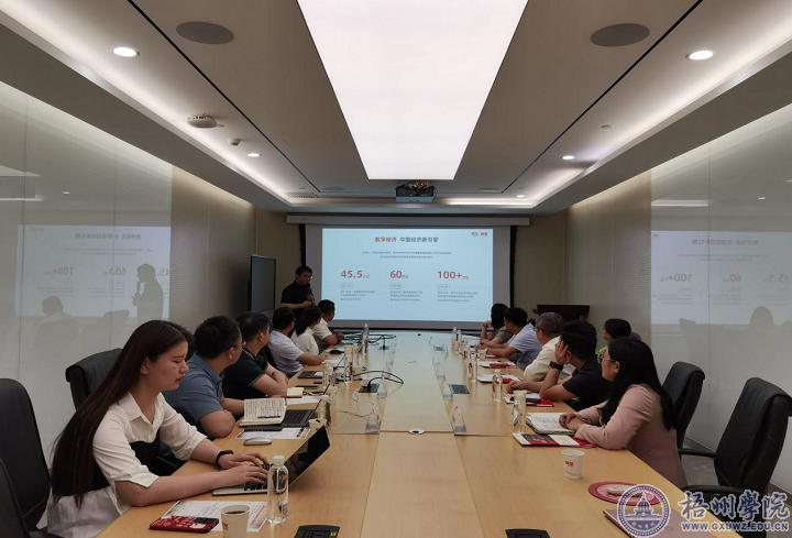 用友新道副总裁贾大明对杨奔校长一行表示热烈欢迎,并带领参观用友数智企业体验馆。座谈会上,相关专家介绍了用友的产业应用和教学场景,以及新道数智化人才培养体系等。杨奔校长对用友新道在中国教育数智化转型的积极作为高度肯定,希望与用友新道共同探讨并构建“校企合作产教融合”,深化未来数智产业学院合作,双方就新商科、数字经济等方面开展了深入交流。