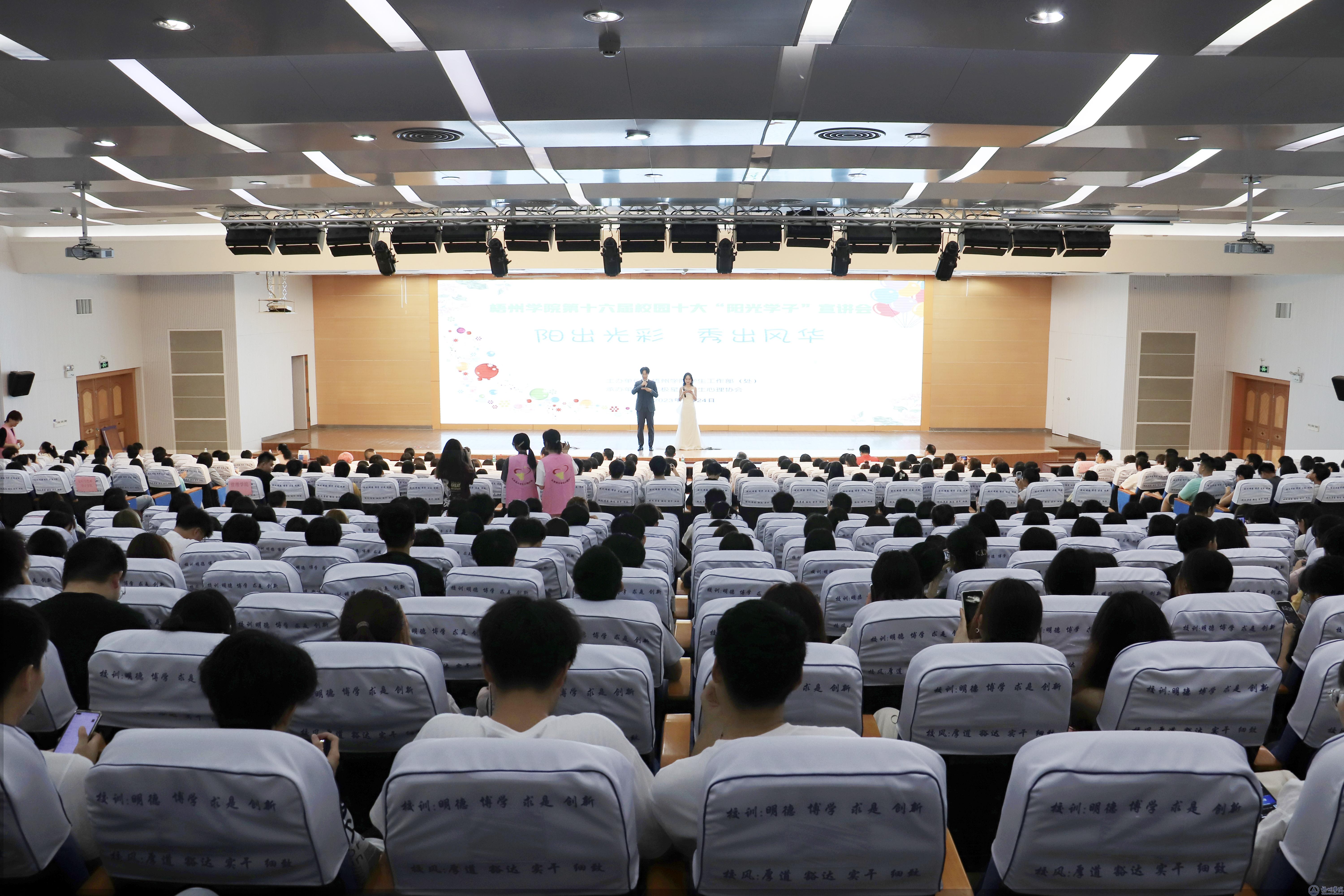 5月24日晚,学校在明理楼一楼学术报告厅举行第十六届校园十大“阳光学子”宣讲会。学校副校长范生汝出席会议,学生工作部(处)、各二级学院负责人,心理健康咨询中心全体老师及500名学生代表参加会议。本次宣讲会由梧州学院学生工作部(处)主办,北极星大学生心理协会承办。