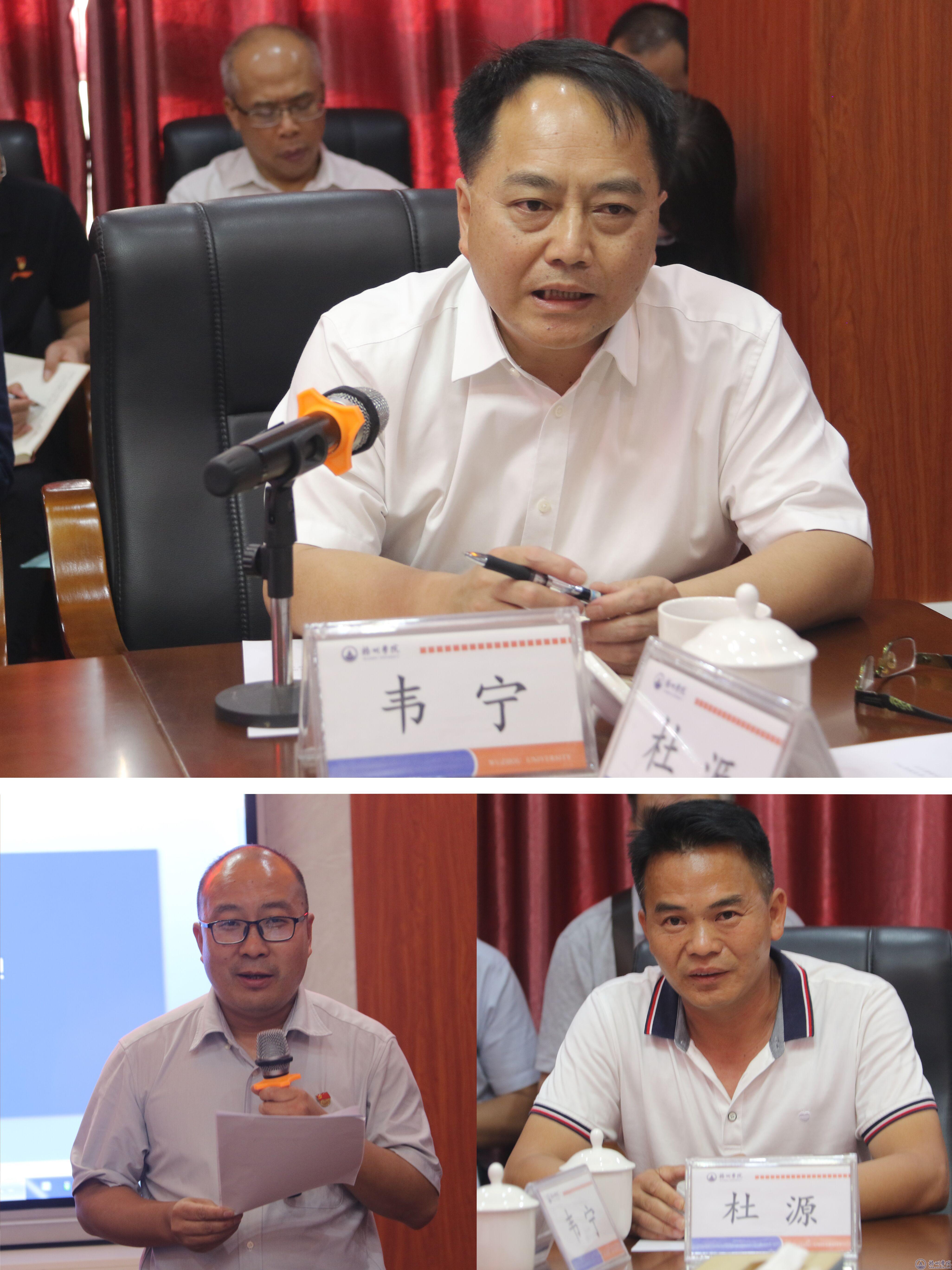 会上,梧州市政协副主席韦宁对梧州学院发展中取得的成绩表示肯定,并介绍了梧州市政协贯彻落实梧州市第十四次党代会的精神,助推梧州经济社会发展的情况,分析了梧州经济发展形势。梧州职业学院党委书记时伟介绍了梧州职业学院在服务地方产业发展方面的经验做法。梧州市盛丰生态科技发展有限公司经理杜源介绍了公司发展的情况及摩天茶海项目建设情况。