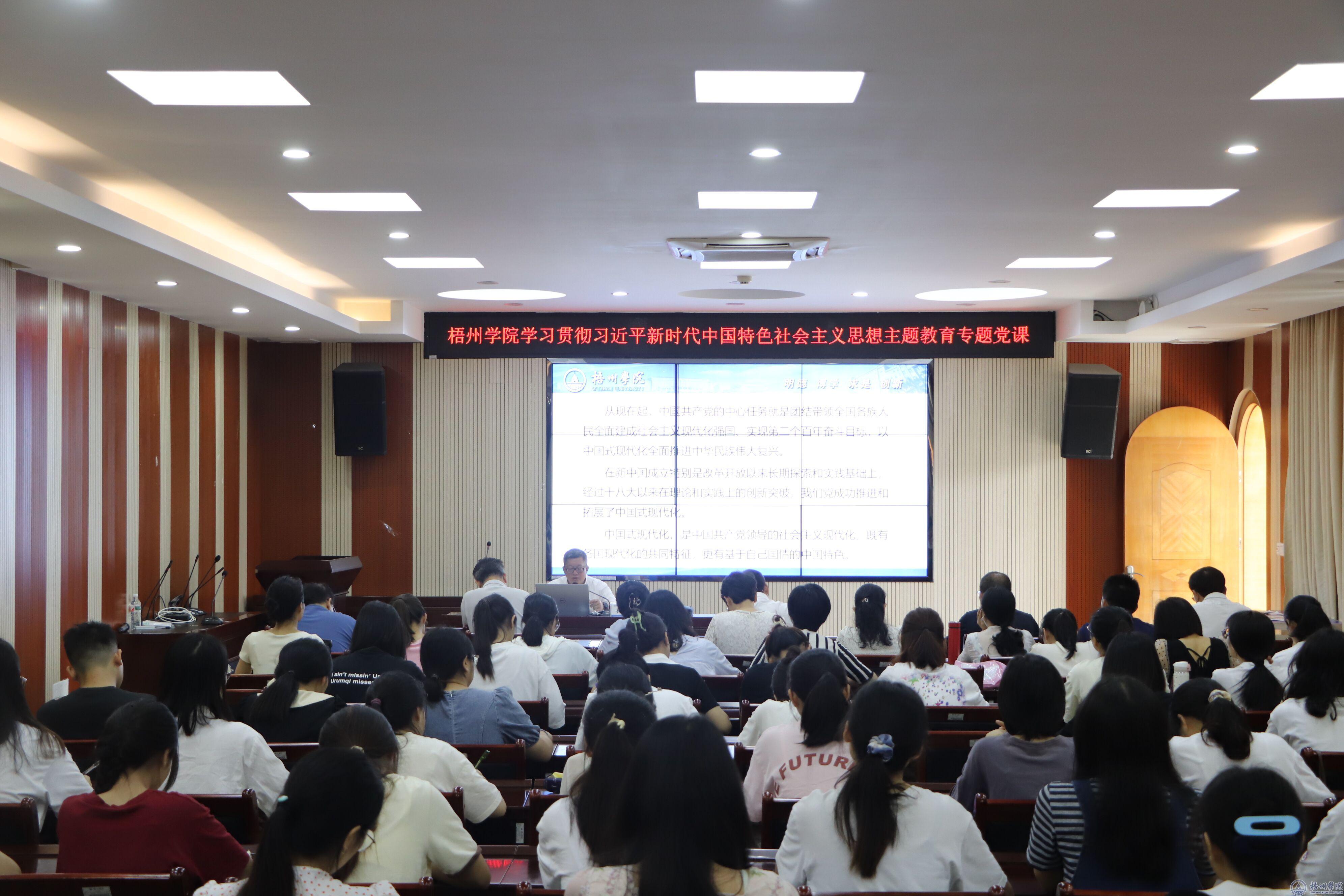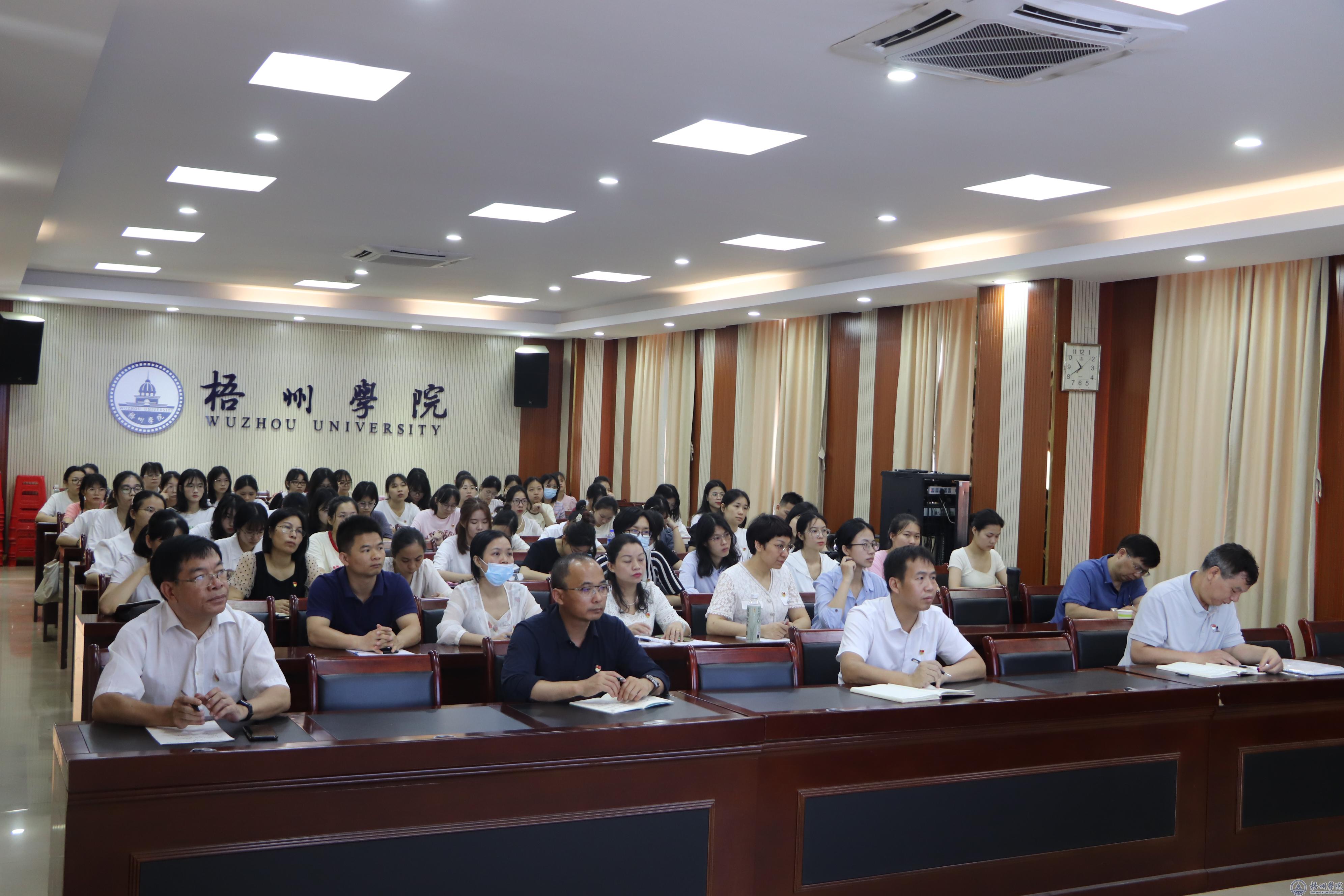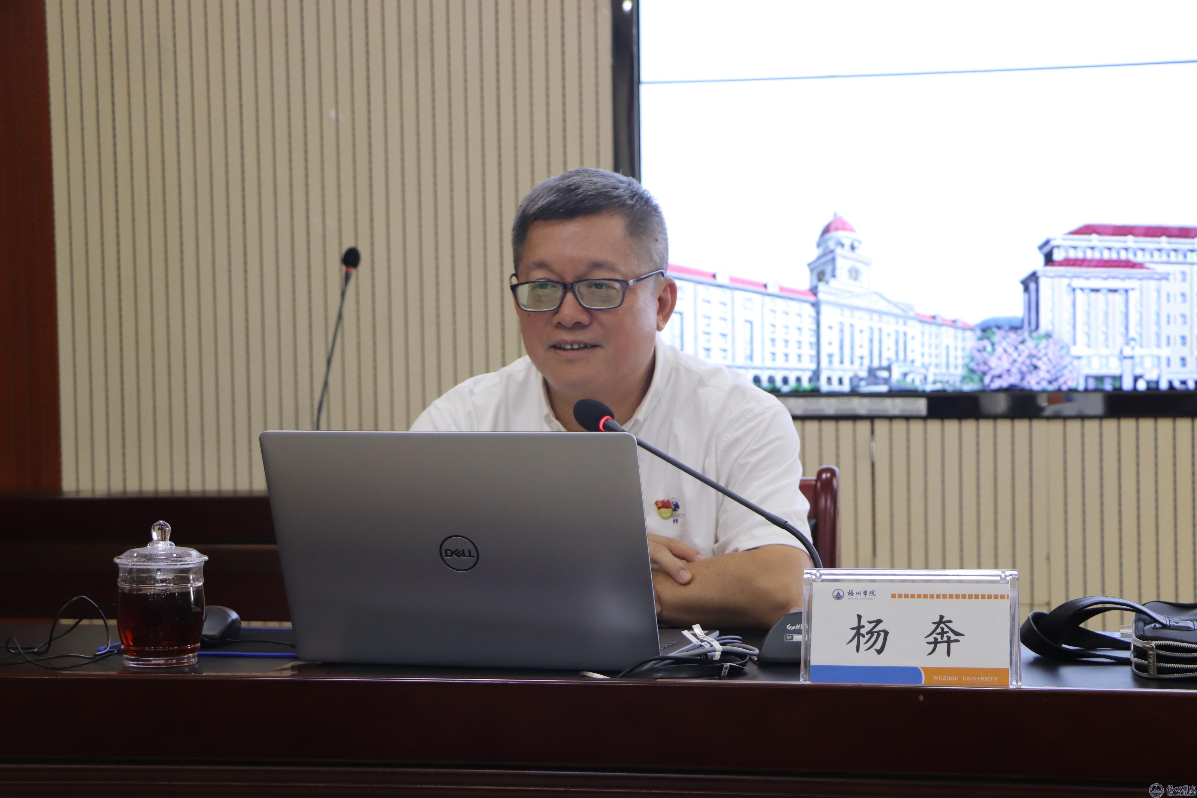 杨奔校长首先领学了党的二十大报告中关于“新时代新征程中国共产党的使命任务”,并从“深入领会中国式现代化对教育工作的重要启示”、“加快推进中国式教育现代化的重要意义”、“实现中国式教育现代化过程中地方高校的政治担当”三个方面进行详细阐述。杨校长指出,高校在落实好自身五大职能,推动中国式教育现代化的同时,也要在服务国家战略中体现政治担当。要深入学习领会习近平总书记关于教育的重要论述,把中国式现代化与地方高校的使命担当落实到实际工作中,对梧州学院在中国式教育现代化征程中如何展示我们的使命担当作了深入阐述。