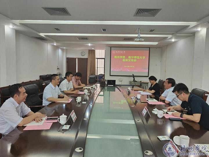 与会人员就国际商务硕士学位点建设、专业转型发展、实训基地、教学成果奖、二级绩效管理、就业创业等主题进行了深入交流。两校还就谋划推动南宁师范大学在硕士学位点培育、联合培养研究生、专业建设等领域对梧州学院的帮扶工作进行了探讨。