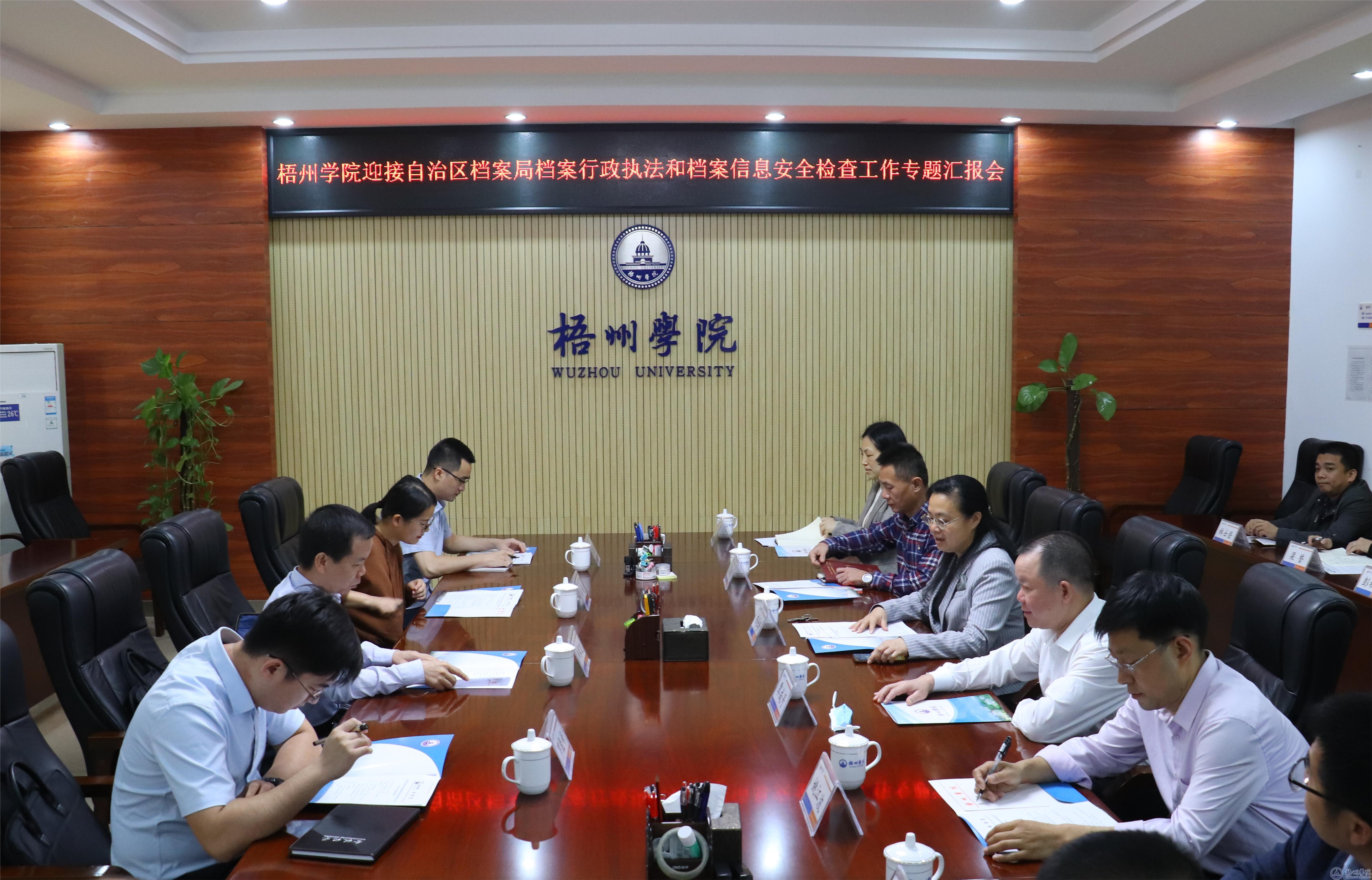 5月12日上午,以自治区党委办公厅(档案局)二级巡视员韦家友为组长的检查组一行4人,到我校开展档案行政执法和档案信息安全工作检查,市档案馆馆长覃成号和相关科室人员陪同检查,学校党委书记韦仕珍参加了检查。