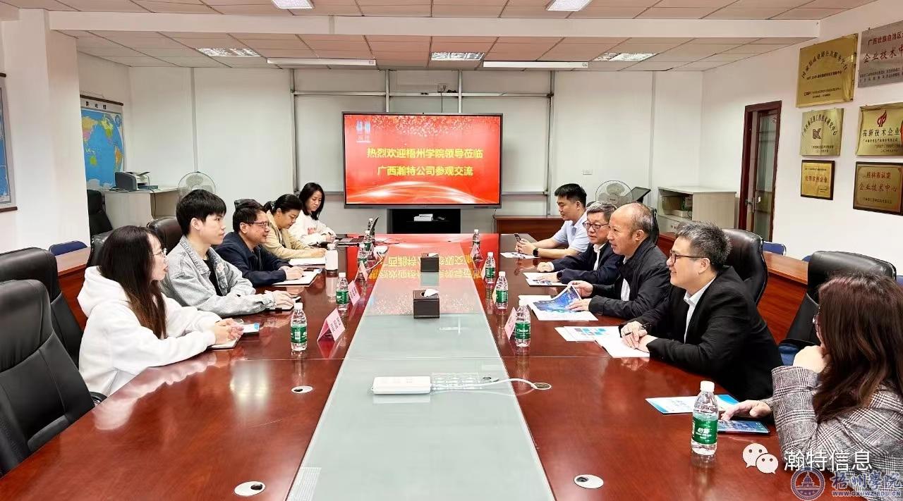 调研组一行首先来到广西瀚特信息产业股份有限公司,并于该公司董事长蒋泰和公司的相关部门负责人进行座谈,双方围绕深化校企合作、毕业生就业、人才培养、学生实习等内容开展深入交流。杨奔表示,希望双方在学生就业实习、产教融合项目建设、就业岗位供需等方面与企业加强合作,共赢发展。蒋泰表示,希望双方进一步深化合作,密切对接人才供需,促进学生学习与就业。
