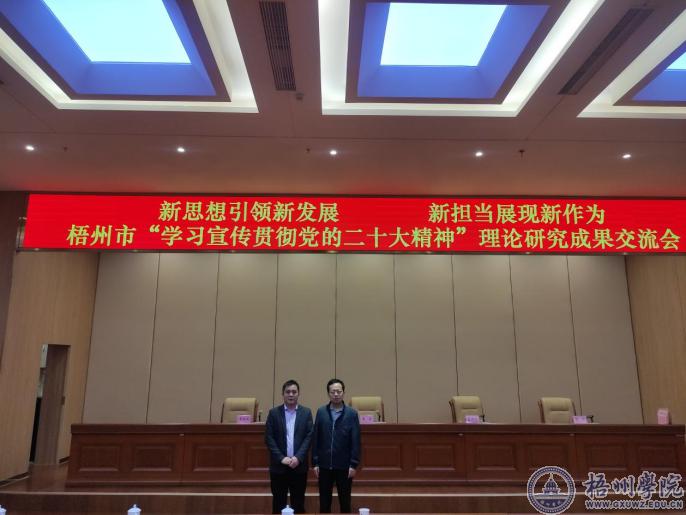 4月7日,中共梧州市委员会宣传部、梧州市社会科学界联合会、中共梧州市委员会党校联合发文,公布梧州市“学习宣传贯彻党的二十大精神”理论研究成果交流会获奖征文名单,我校马克思主义学院杨振宇副教授获得一等奖,唐景成教授获得二等奖。唐景成教授在“学习宣传贯彻党的二十大精神”理论研究成果交流会上对自己的研究成果作了交流发言。