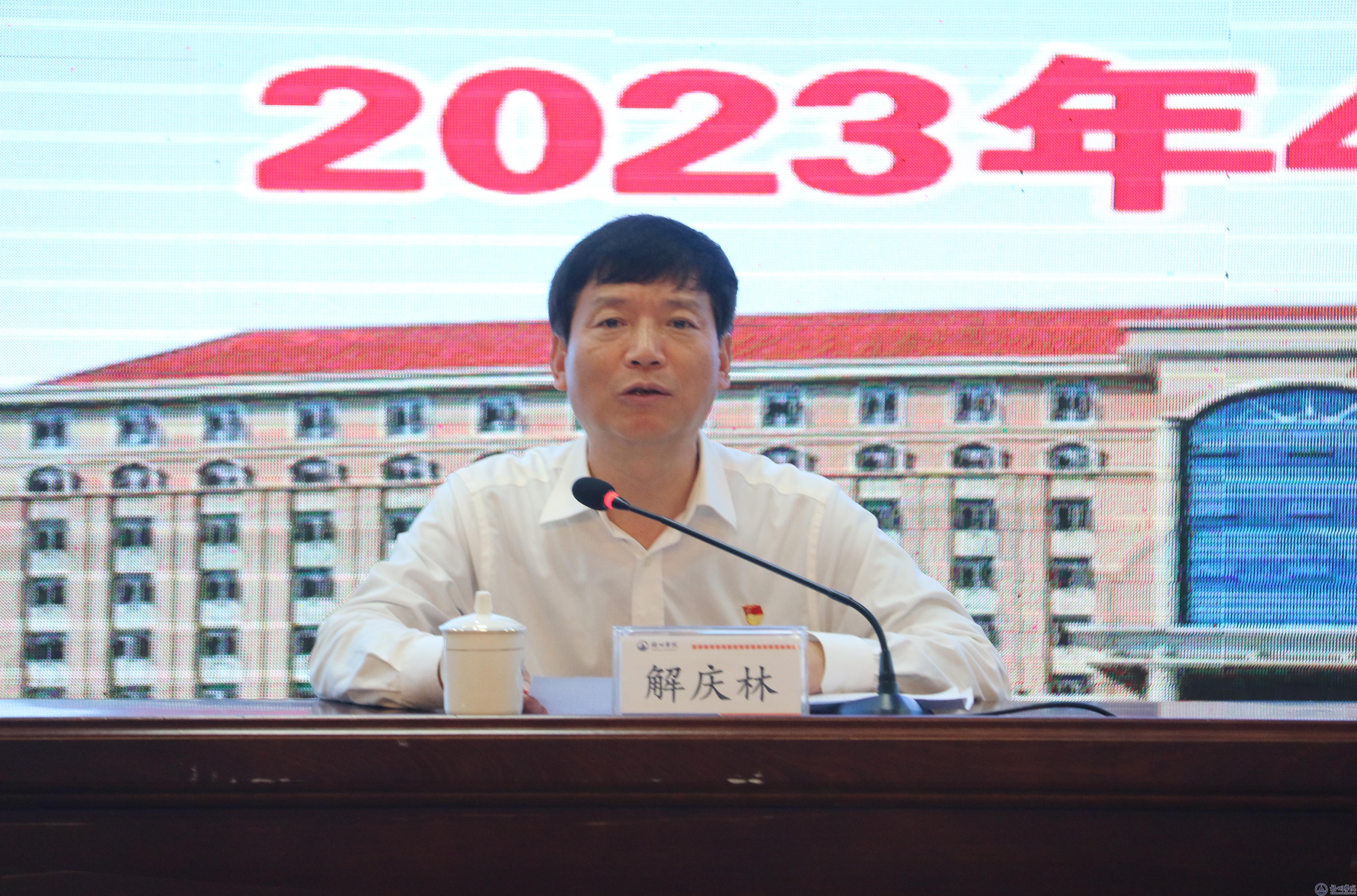 学校党委书记韦仕珍作动员讲话 解庆林在指导讲话中传达了习近平总书记关于开展主题教育系列重要指示精神和党中央、自治区关于主题教育的整体部署,详细说明了自治区党委主题教育指导组的职责任务,并对梧州学院高质量推进主题教育,提出了明确工作要求。一要提高政治站位,增强做好主题教育的政治责任感和历史使命感。教育引导广大的党员干部用习近平新时代中国特色社会主义思想凝心铸魂,深刻领悟两个确立的决定性意义,坚决做到“两个维护”,二要把握总体的要求,确保主题教育的方向正确。把开展主题教育与围绕服务中心大局结合起来,为推动梧州学院高质量发展要提供强大的动力;三要紧盯根本的任务,确保各项工作推进有力。一切工作安排、一切推动措施、一切工作要求都要围绕深入学习习近平新时代中国特色社会主义思想这一主线,确保主题教育有力有效,走深走实;四要围绕具体的目标,确保各项工作抓出高质量。结合学校申硕、专业建设等中心工作,落实好立德树人的根本任务,以高水平的党建引领学校高质量的发展;五要抓实重点措施,把理论学习、调查研究、推动发展、检视整改等要贯通起来,一体化推进。做到查实情与出实招相统一,重实际与求实效相结合;六要禁止形式主义,坚决防止两张皮,确保主题教育走深走实。 解庆林表示,指导组将严格按照党中央部署要求,坚持原则、严格标准,与梧州学院党委同题共答,做好指导和帮助服务工作。