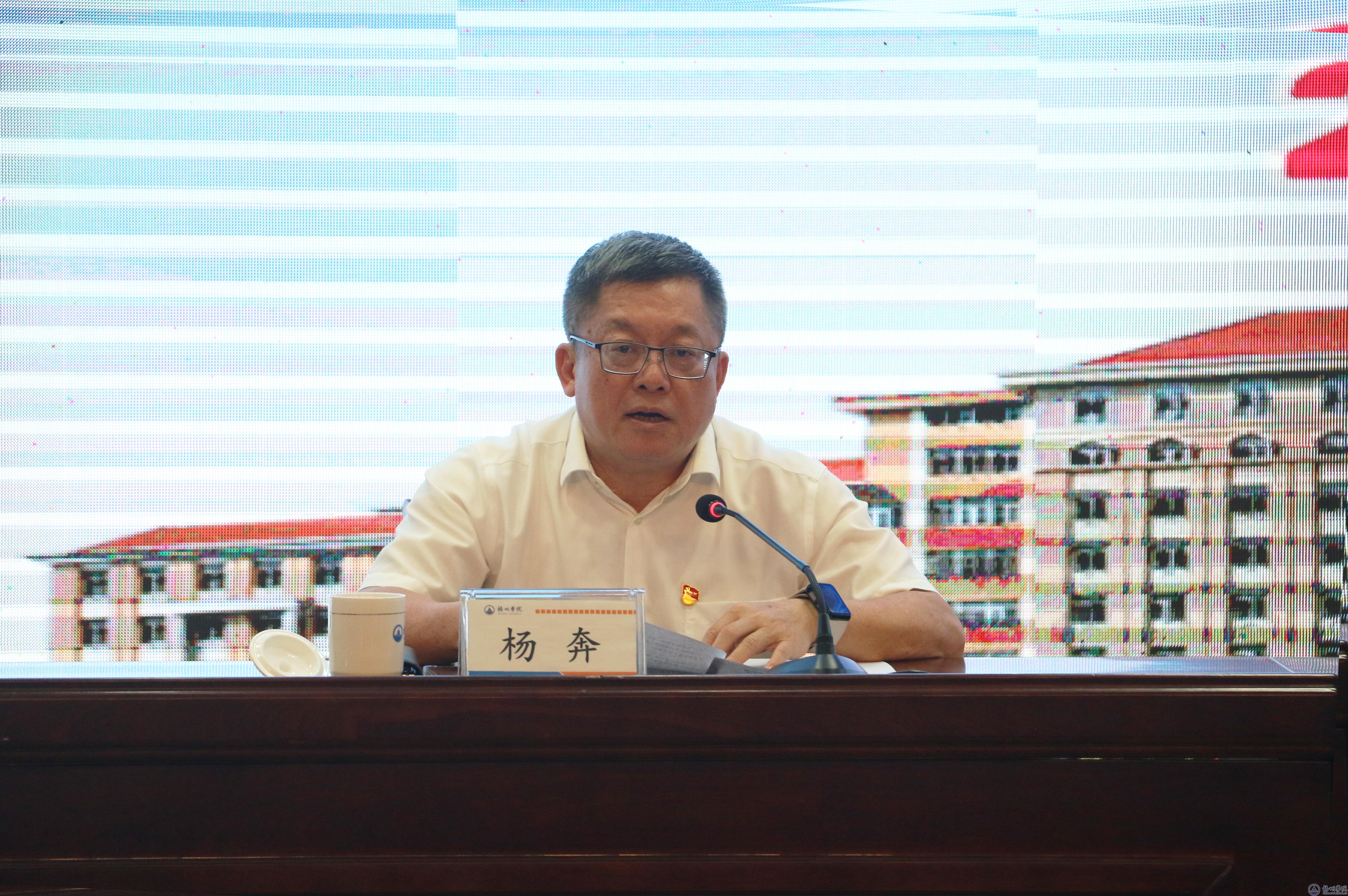 学校校长杨奔主持会议 韦仕珍书记在动员讲话中指出,深入开展学习贯彻习近平新时代中国特色社会主义思想主题教育意义重大而深远,是用党的创新理论武装全党、凝聚团结奋斗磅礴力量的迫切需要;是奋力开创梧院事业新局面、推动高质量发展取得新突破的内在需求;是发扬自我革命精神、深入推进全面从严治党的有力举措。我校是自治区首批开展主题教育的单位,责任重大、使命光荣。学校各级党组织、广大党员干部要深入贯彻落实习近平总书记关于深入开展主题教育系列重要讲话精神,全面贯彻以习近平同志为核心的党中央决策部署,认真落实自治区党委工作要求,迅速行动起来,全面掀起开展主题教育的热潮,感悟思想伟力、永葆政治本色、焕发奋斗激情,为推动梧州学院建设特色鲜明的应用型高水平大学取得新突破建功立业。 结合主题教育的目标任务,韦仕珍书记具体部署了学校落实主题教育的工作安排,并提出具体要求。第一要牢牢把握“学思想、强党性、重实践、建新功”总体要求,明晰方向不动摇,彻彻底底、完完全全落实到位,实现认识与实践、理论与实际、改造主观世界与改造客观世界的高度统一;第二要紧紧锚定目标任务,抓住重点不走样。把习近平新时代中国特色社会主义思想转化为坚定理想、锤炼党性和指导实践、推动工作的强大力量,使全党始终保持统一的思想、坚定的意志、协调的行动、强大的战斗力,努力在以学铸魂、以学增智、以学正风、以学促干方面取得实实在在的成效;第三要精准落实重点措施,确保工作有成效。一是抓好理论学习,坚持分级分类并举、线上线下并用,理论实践并重,严格落实“第一议题”、理论学习中心组、领导干部讲党课等制度,扎实开展理论学习读书班、集体研讨交流等活动。二是坚持问题导向,开展调查研究,推动解决师生的所急所忧所盼,以强化理论学习指导发展实践,以深化调查研究推动解决发展难题。三是锚定我校聚焦实现高质量发展这个核心任务,学校力争建成硕士学位授权单位,加快推进更名大学建设进程,以推动高质量发展的新成效来检验主题教育成果。四是抓好检视整改,坚持边学习、边对照、边检视、边整改,把问题整改贯穿主题教育始终。 韦仕珍书记强调主题教育是一件事关全局的大事,时间紧、任务重、要求高。全校各级党组织、广大党员干部要切实增强责任感、使命感、紧迫感,严格按照中央、自治区党委部署和学校党委要求,以身作则、以上率下,务求实效,高标准、高质量地开展好主题教育工作。以这次主题教育为契机,加强党的创新理论武装,聚焦新目标,开启新征程,为推动学校事业高质量发展取得新突破而团结奋斗!