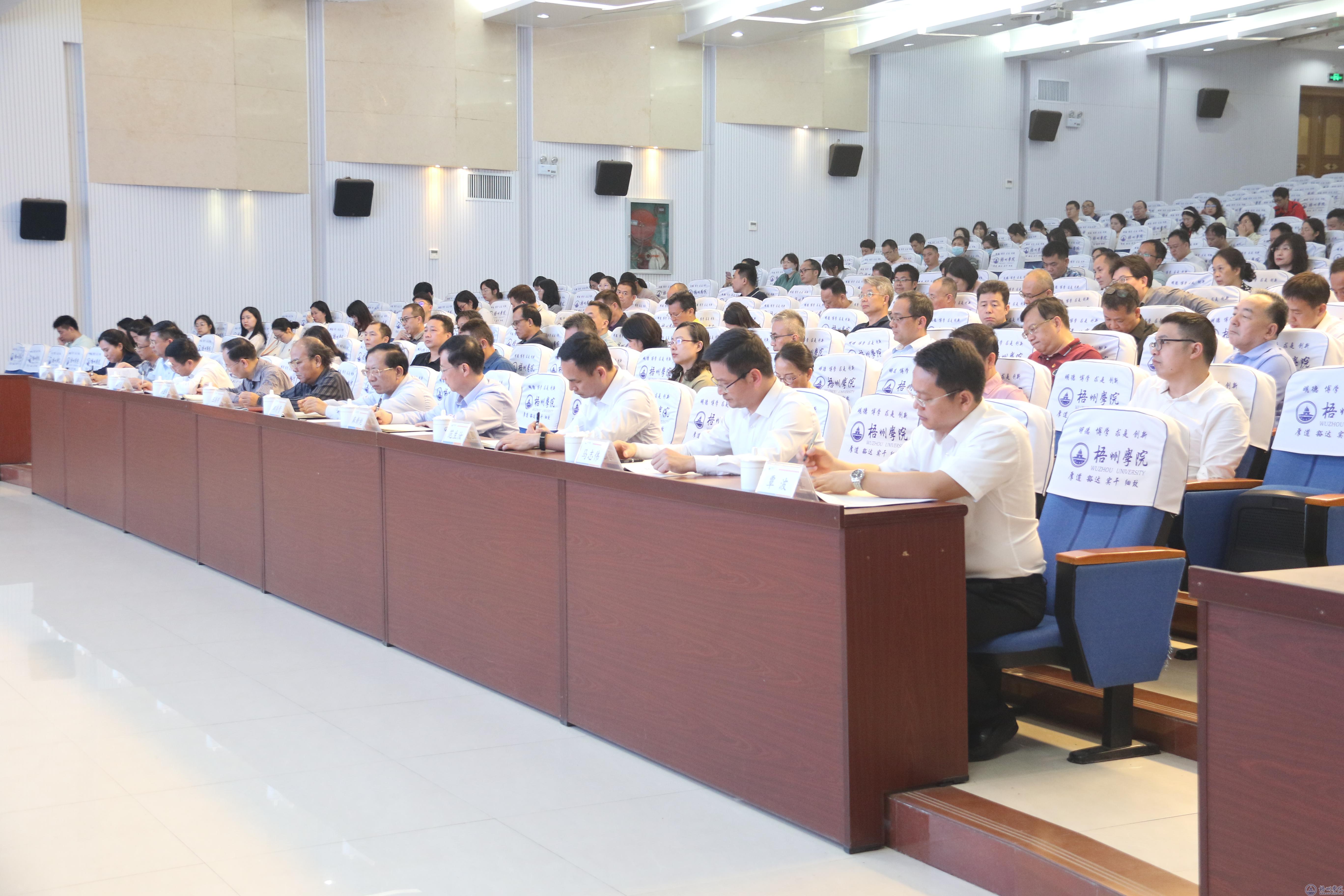近日,梧州学院在明理楼学术报告厅召开学习贯彻习近平新时代中国特色社会主义思想主题教育工作会议,深入学习贯彻习近平总书记在中央主题教育工作会议上的重要讲话精神,贯彻落实中央、自治区主题教育工作会议精神,对学校主题教育工作进行动员部署。