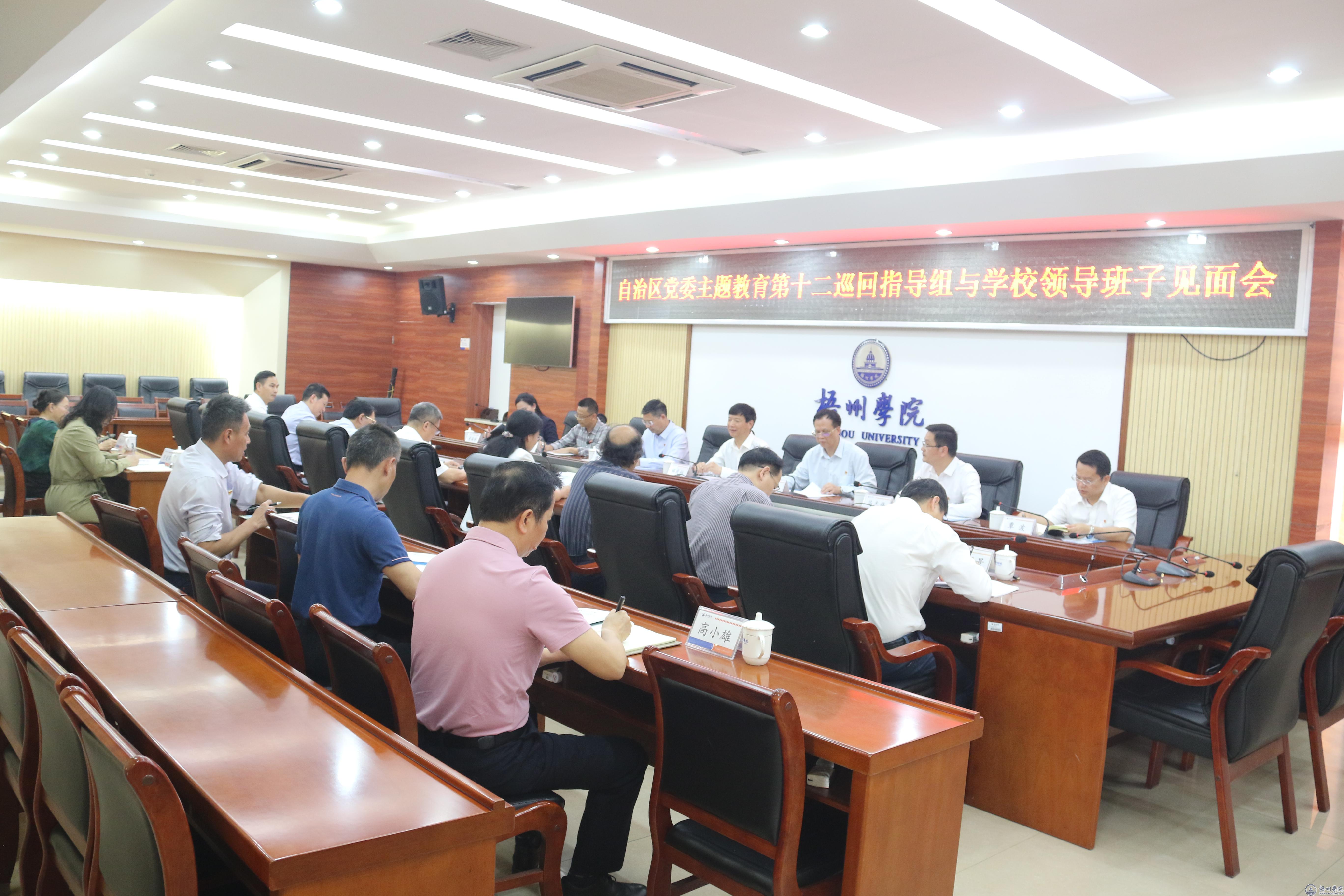 指导组组长解庆林讲话 会前,自治区党委主题教育第十二巡回指导组与学校领导班子在明理楼八楼第一会议室召开见面会。