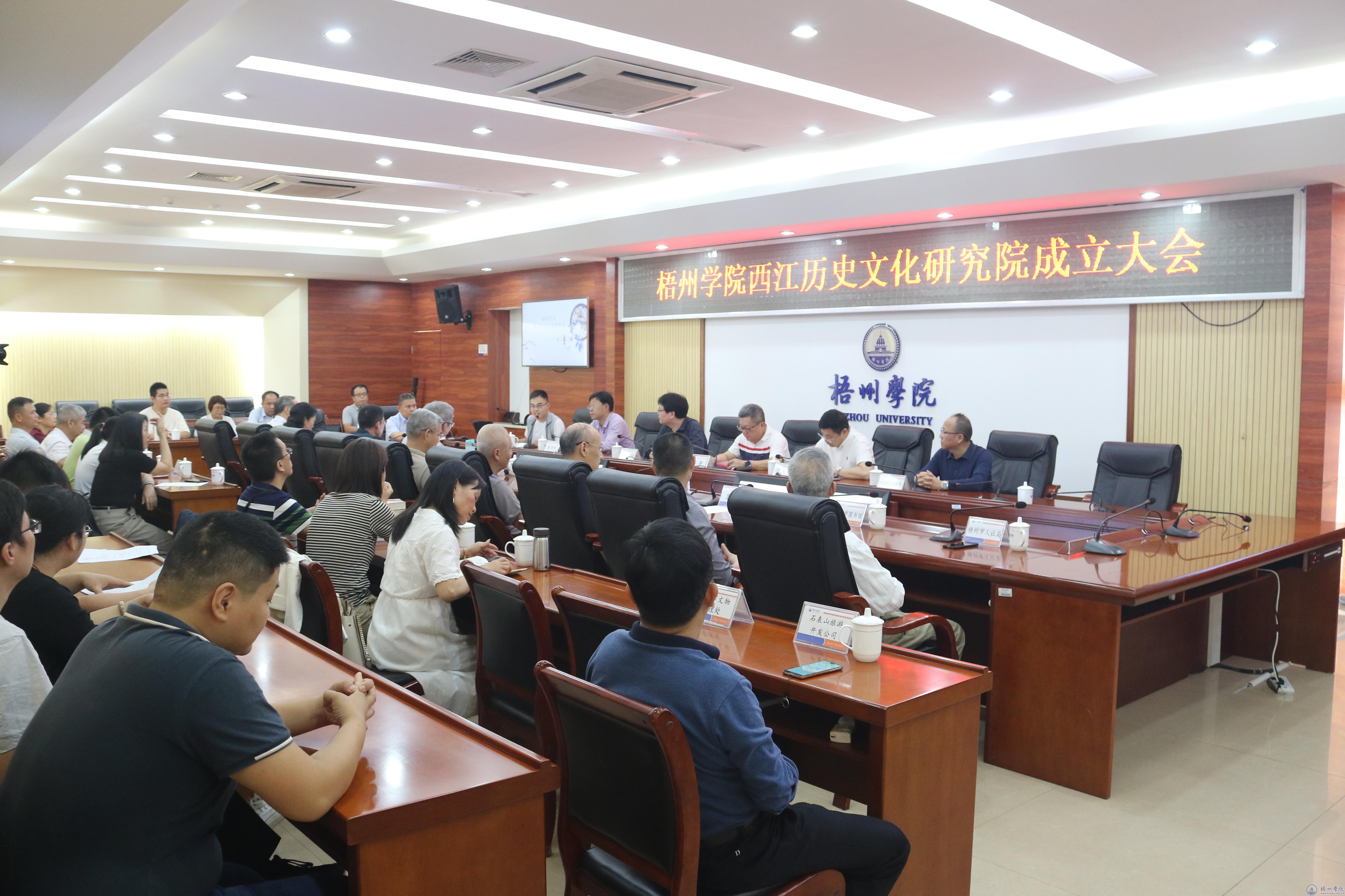 4月20日下午,学校在明理楼八楼第一会议室举行西江历史文化研究院成立大会。学校校长杨奔、副校长宾月景出席大会。来自梧州市社科联、梧州市政协、梧州市博物馆、梧州市地方志编纂委员会办公室、梧州市委党史研究室、梧州市档案馆、梧州市图书馆、苍梧县文物管理所、岑溪市文物管理所、贺州民族文化博物馆、贺州市博物馆、中国致公党梧州市委会、石表山旅游开发公司、梧州市人社局、梧州市文物管理处、岑溪市文旅局、岑溪市甘乃光纪念馆、肇庆市博物馆、封开县博物馆、罗定市博物馆、郁南县文化图书和博物馆等区内外22家单位的38名专家学者雅集一堂,共同见证梧州学院西江历史文化研究院成立。大会由学校西江流域民间文献研究中心常务副主任陈宇思博士主持。