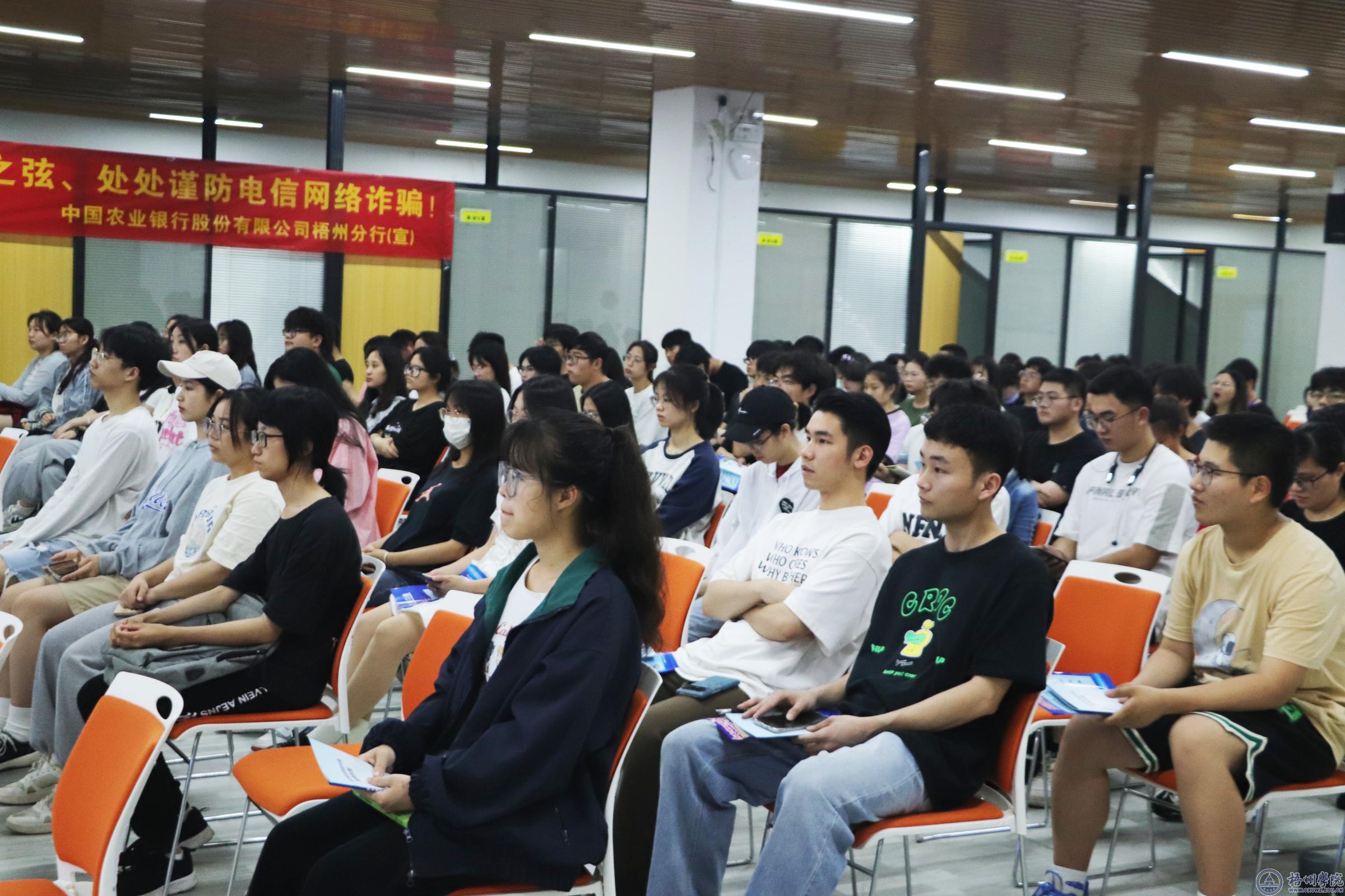 宣讲会现场,中国农业银行股份有限公司梧州分行、富民街道办相关人员向师生发放了反诈防骗宣传资料。