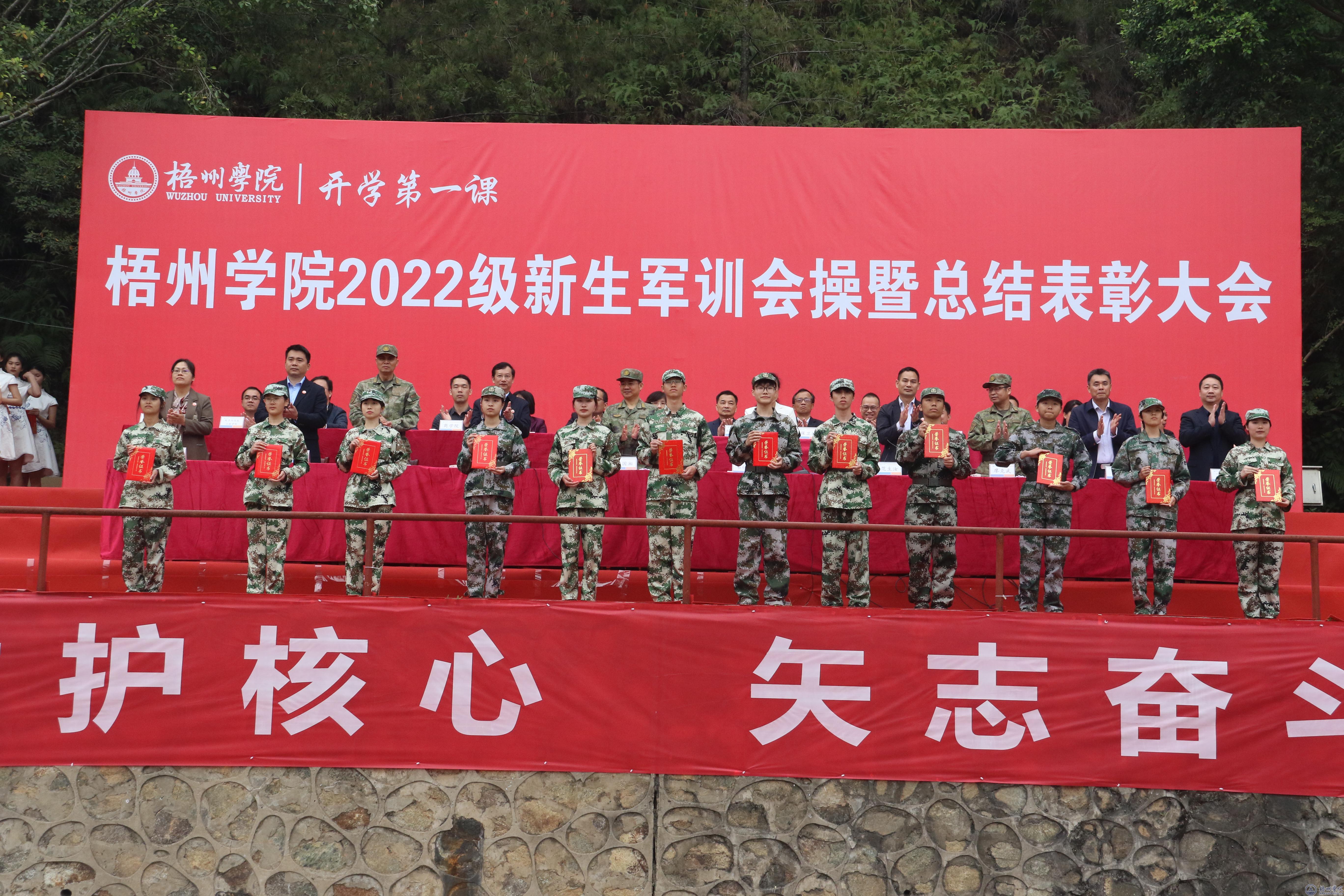 3月12日上午,学校在田径场举行“开学第一课”——2022级新生军训会操暨总结表彰大会。梧州军分区大校政治委员张国湘,我校党委书记韦仕珍、副校长麻新纯、副校长范生汝出席大会。梧州军分区战备建设处、万秀区武装部领导、梧州学院军训领导小组成员,2022级辅导员、班主任代表,全体2022级新生参加大会。大会由范生汝副校长主持。