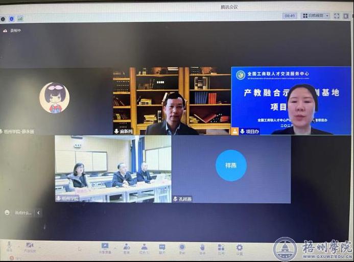 2022年11月全国工商联人才交流服务中心在全国范围内遴选一批普通本科院校建设产教融合示范实训基地。我校依托宝石现代产业学院建设任务、建设成果,编写和完善相关申报材料,并于2023年1月13日与全国工商联人才交流服务中心举行了产教融合示范实训基地项目立项线上调研会议。全国工商联人才中心副主任张一卫、示范实训基地项目办副主任马卉子、副主任孔祥燕,我校副校长麻新纯参加了调研会议。