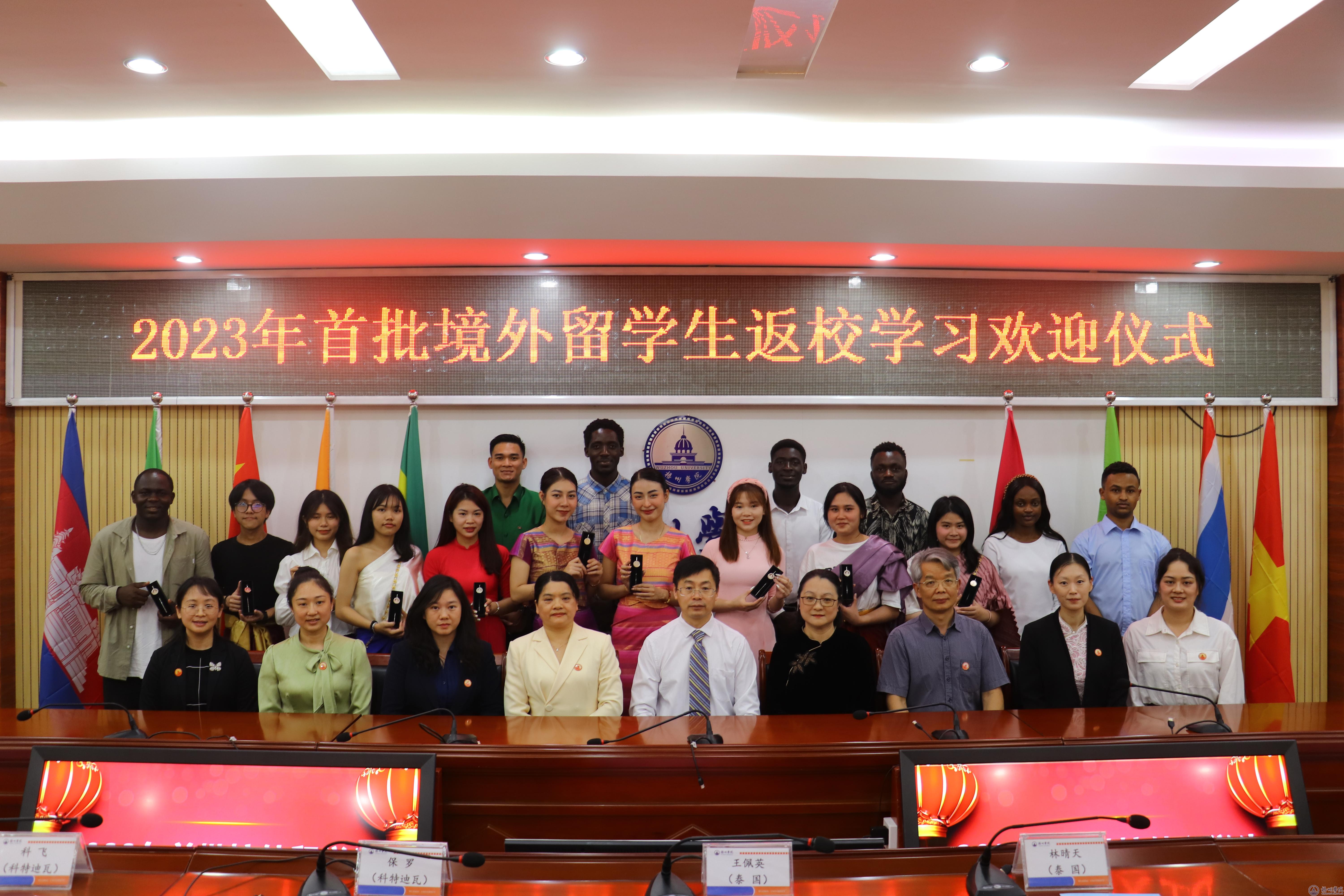 3月22日下午,学校在明理楼举行2023年首批境外留学生返校学习欢迎仪式。学校副校长宾月景,相关二级学院领导及来自八个国家的十九名留学生参加了欢迎仪式。