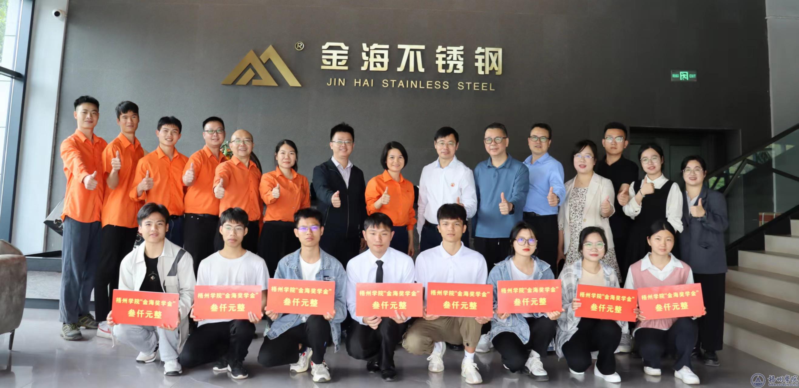 3月22日上午,梧州学院“金海奖学金”颁奖仪式在金海不锈钢有限公司一楼会议室举行。学校副校长宾月景、金海辉煌集团董事长李娟、金海辉煌集团总经理李志刚出席颁奖仪式。