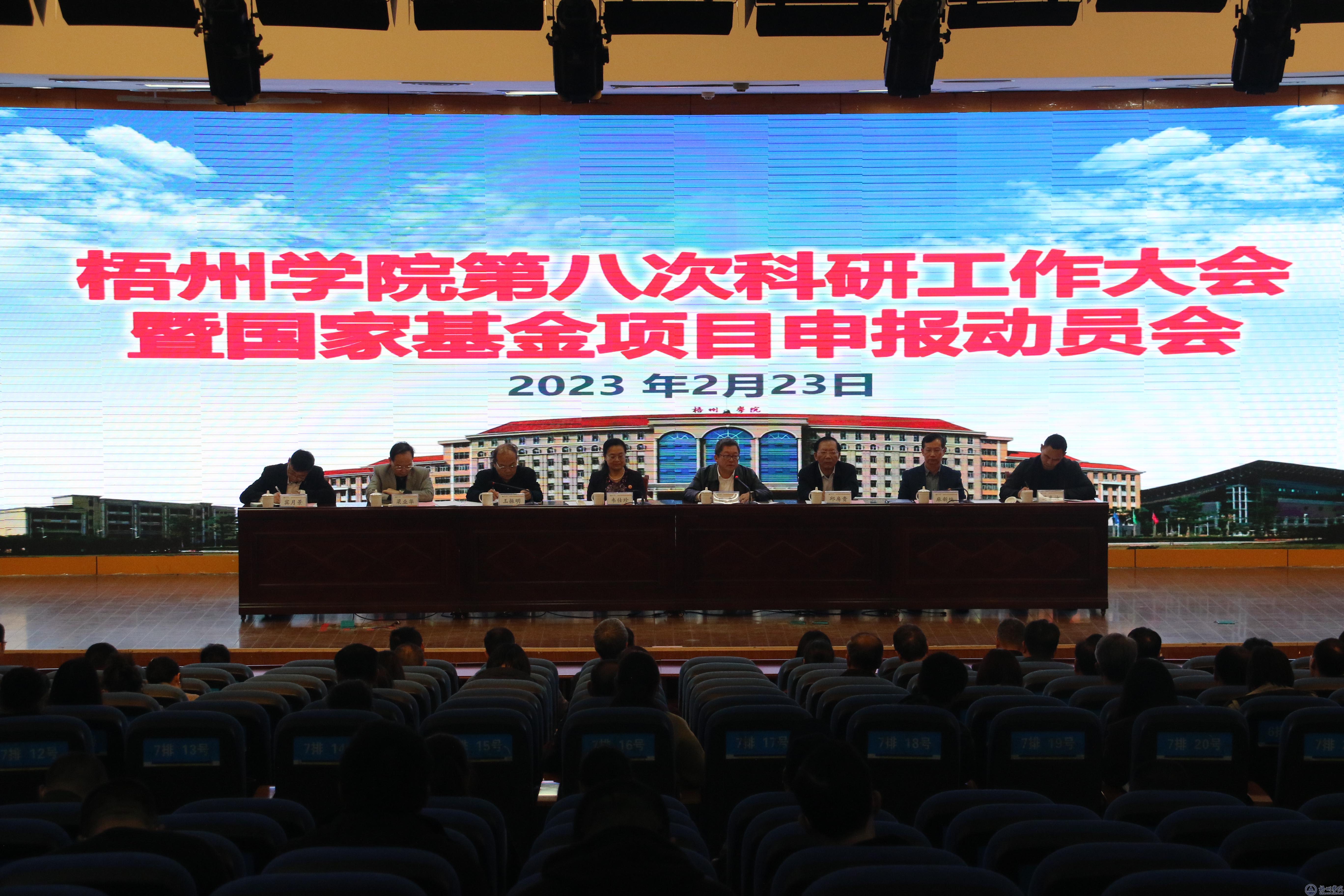 2月23日,学校在明理楼学术报告厅召开第八次科研工作会议暨国家基金项目申报动员会,回顾总结过去两年的科研工作情况,谋划部署今后两年的科研工作。学校领导韦仕珍、杨奔、玉振明、邱房贵、梁业华、麻新纯、宾月景、范生汝出席会议,全校副高职称及以上人员、博士及有意向申报国家级项目的教师参加会议。会议由副校长玉振明主持。