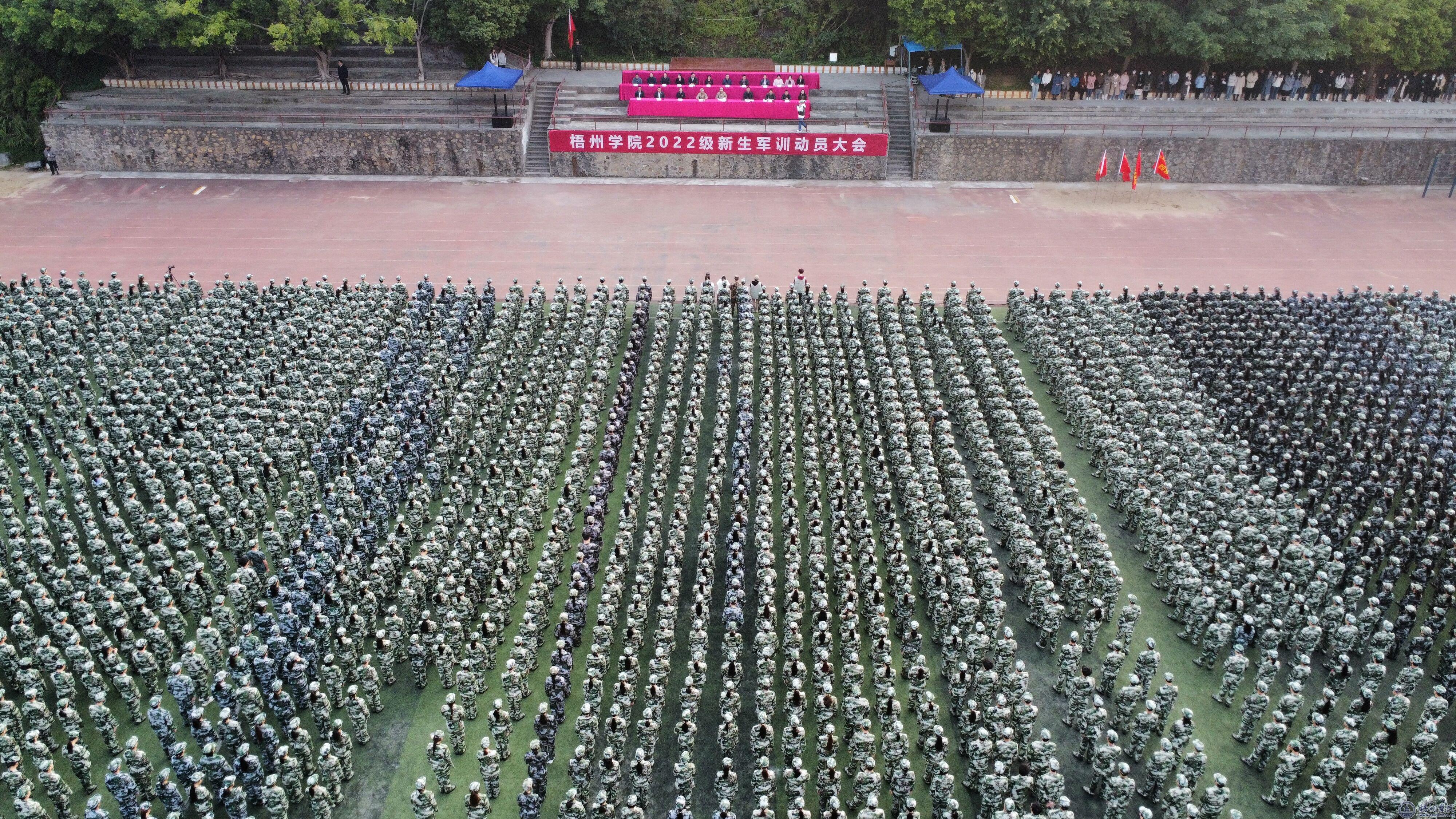 2月27日,学校在田径场举行2022级新生军训动员大会。梧州军分区副司令左平生大校,学校党委常委、副校长范生汝,梧州市万秀区武装部部长于海明,学校2022级新生军训工作领导小组成员,2022级新生辅导员、班主任,全体2022级参训新生参加大会。