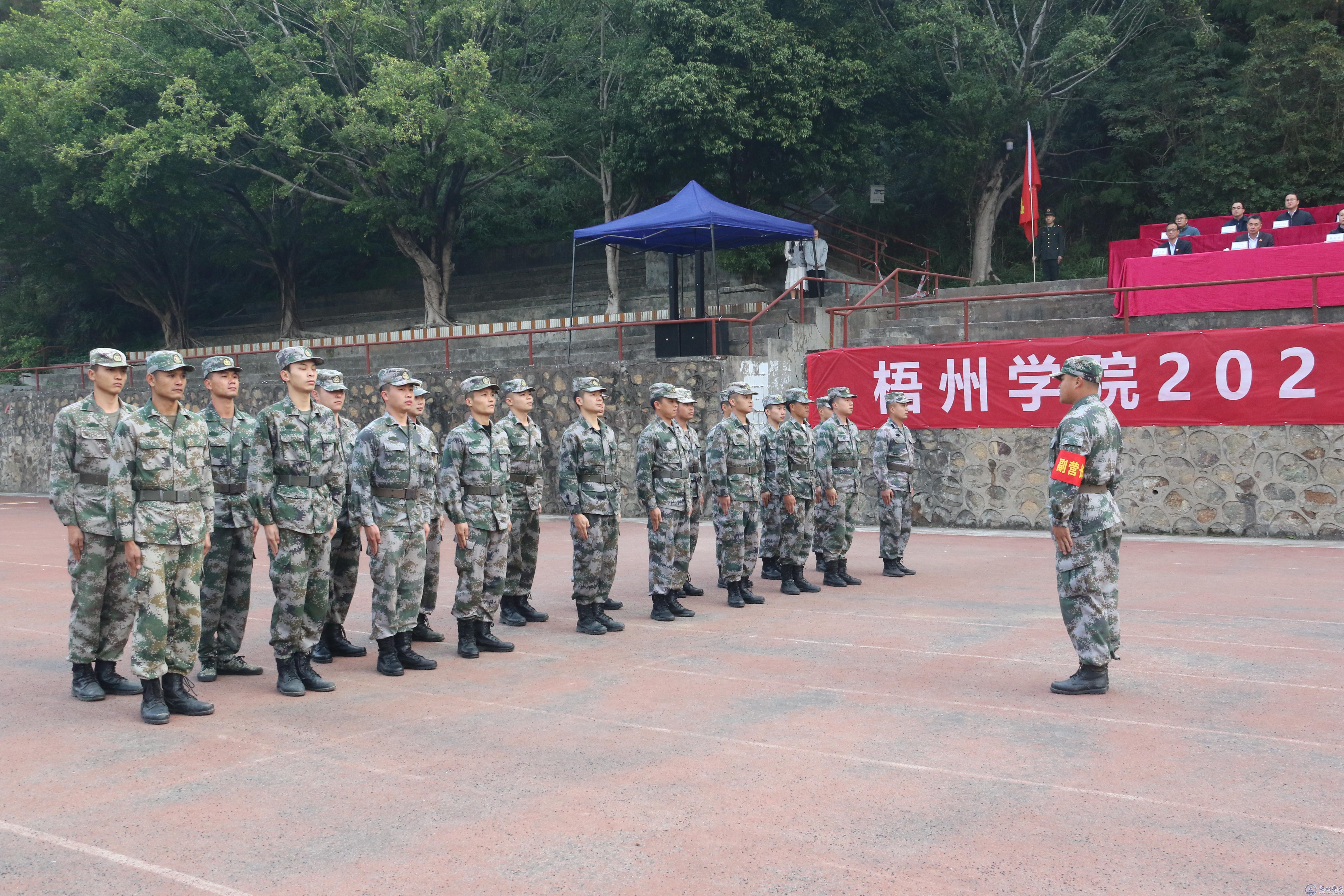 梧州军分区副司令左平生大校作讲话。他表示开展大学生军事训练是贯彻落实习近平总书记的重要指示精神,培养大学生过硬作风,促进大学生健康成长的需要。他要求本次军训做到严格训练,严格要求;互相学习,共同提高;精心组织,确保效果。国防是全民的国防,青年大学生要强化国防意识,增强国防观念。希望参训学生牢记习近平总书记给予青年的嘱托,成为可爱、可信、可贵、可为的优秀青年。