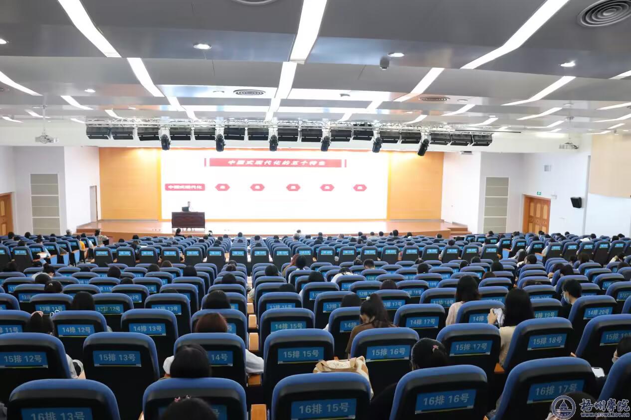 范生汝副校长围绕党的二十大报告中的新观点、新论断、新思想,以党的二十大报告为主题、回顾过去五年的工作和新时代十年的伟大变革等方面,对党的二十大精神的丰富内涵与核心要义进行了全面系统的讲解,其中重点介绍了党的二十大报告中的马克思主义中国化、中国式现代化两方面。报告会上范生汝副校长提到“新时代之下必须坚持党的全面领导、积极应对风险与挑战、全力推动我校高质量发展。”