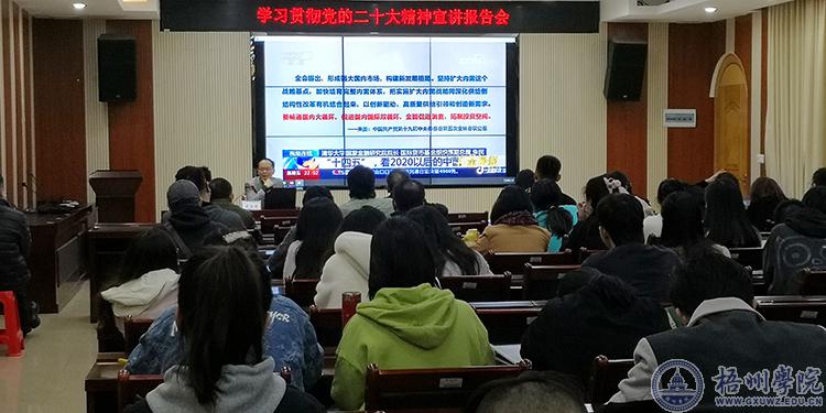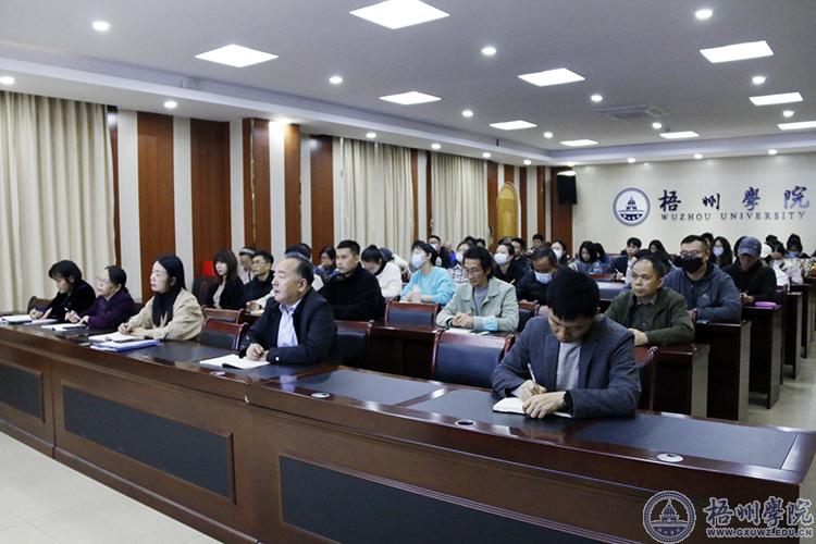 为深入学习宣传贯彻党的二十大精神,11月30日,学校纪委书记梁业华在明理楼7楼视频会议室作题为《加快构建新发展格局 着力推动高质量发展》学习宣传贯彻党的二十大精神宣讲报告会。宝石与艺术设计学院全体教职工和学生党员代表聆听了报告会。