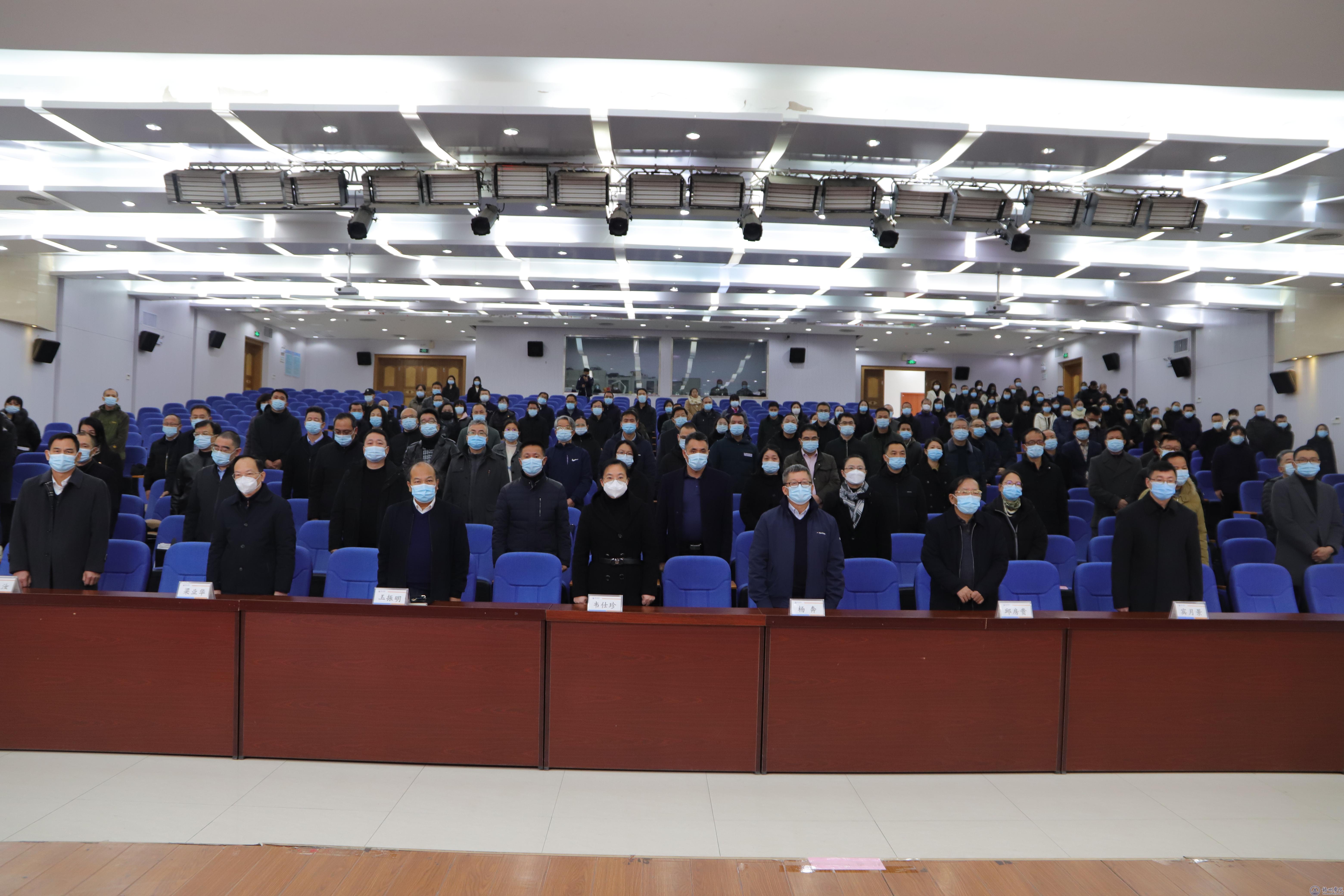 学校领导韦仕珍、杨奔、玉振明、邱房贵、梁业华、宾月景、范生汝,学校科级以上领导干部怀着极其沉痛的心情,在明理楼一楼学术报告厅集中收听收看北京举行的江泽民同志追悼大会的电视实况直播,沉痛哀悼深切缅怀江泽民同志。
