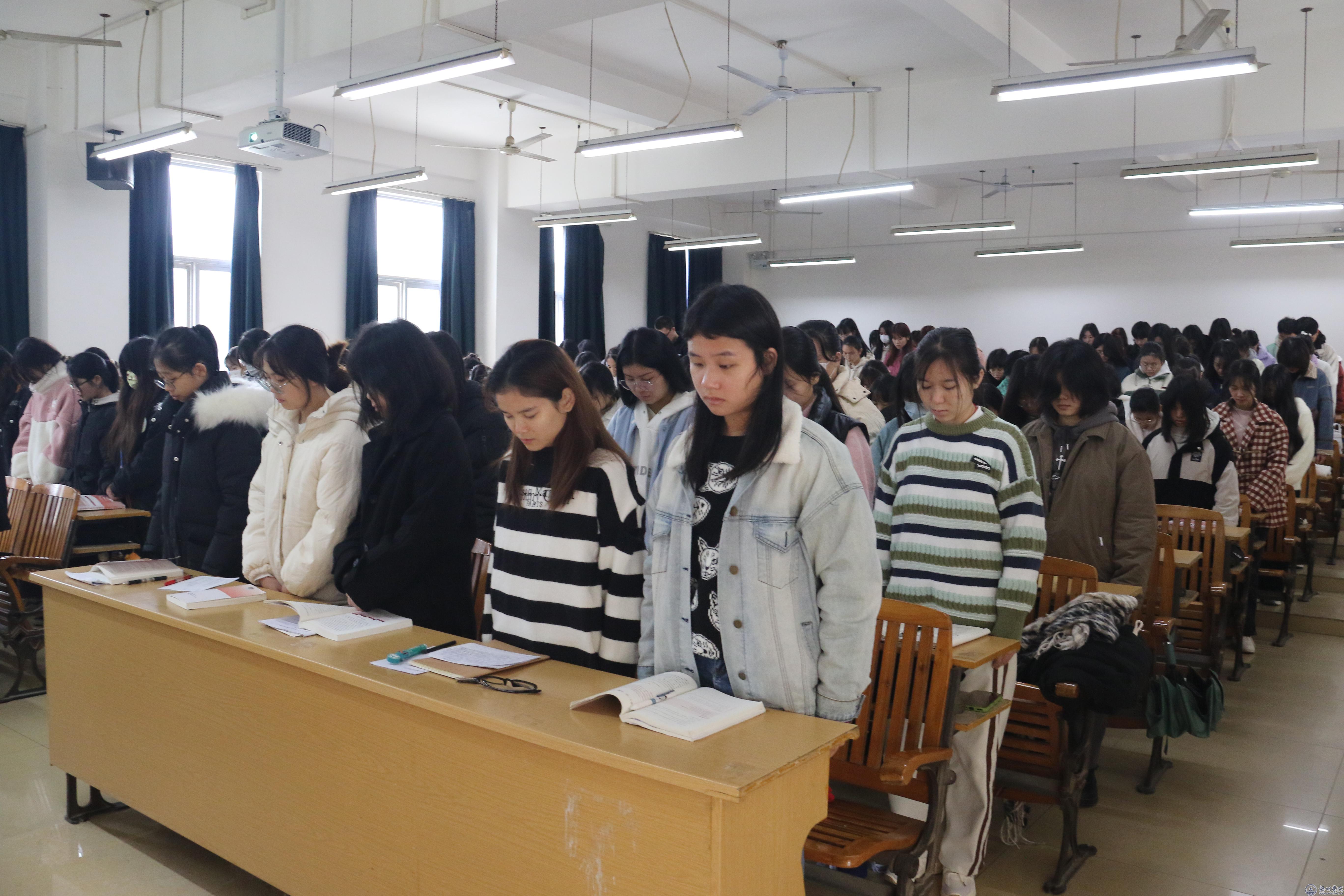 10点整,江泽民同志追悼大会开始,明理楼一楼学术报告厅气氛庄严肃穆,大家向江泽民同志默哀。默哀毕,全场高唱国歌。随后,大家认真聆听了习近平总书记所作的悼词。收听收看过程中,大家全程肃立。