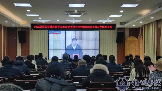 12月7日,自治区教育厅、自治区人力资源社会保障厅共同召开了2023届全区普通高校毕业生就业创业工作网络视频会议。我校在明理楼七楼视频会议室设立分会场,学校党委书记韦仕珍,副校长范生汝,梧州市人才交流中心主任陈卓,党委(校长)办公室、组织部、宣传部、学生工作部、教务处、校团委、创新创业教育学院主要负责人,各二级学院负责人、分管就业创业工作领导以及2023届毕业班辅导员参加了会议。