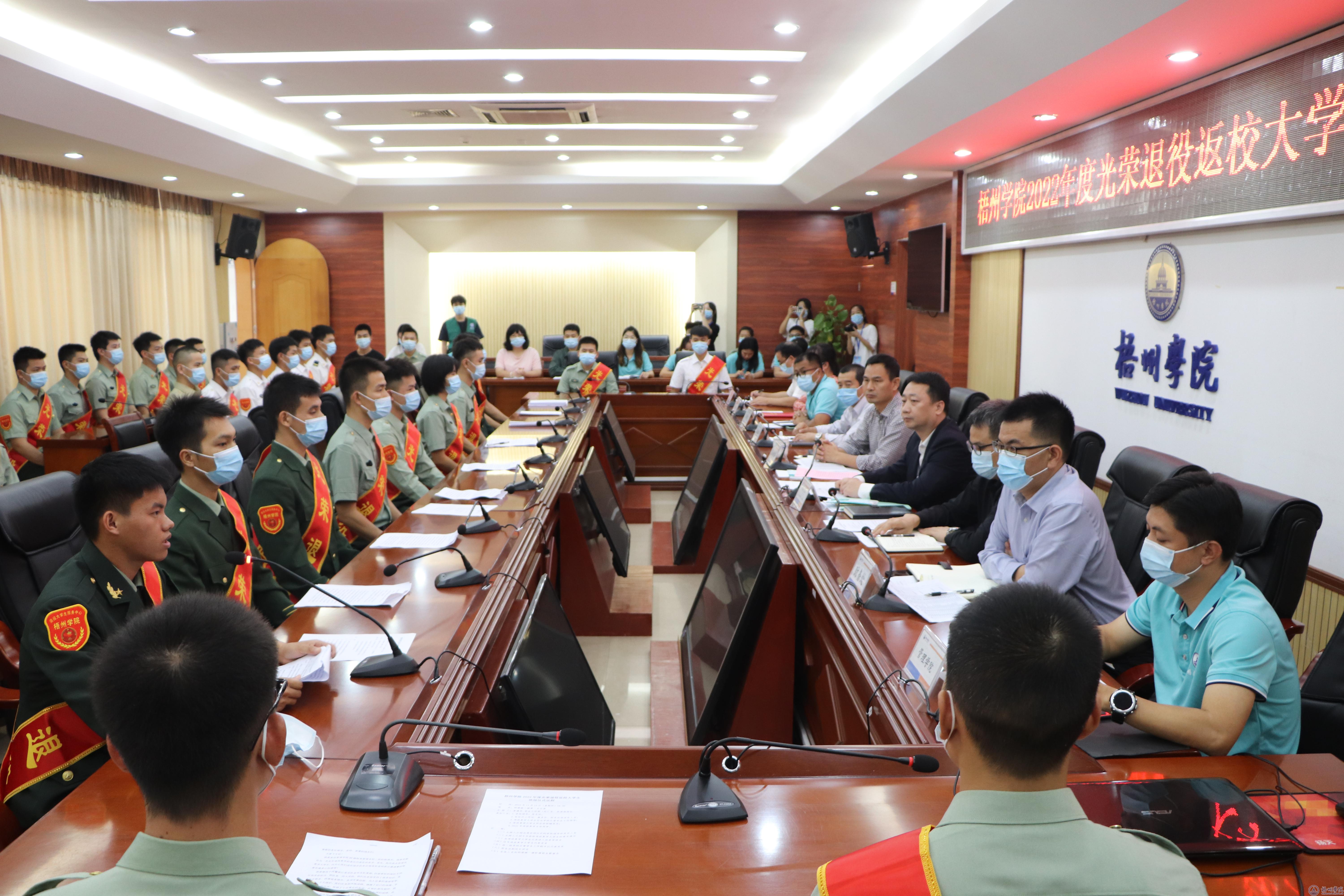 会上,学生工作部(处)部(处)长、武装部部长李德华介绍了学校2022年退役大学生的基本情况。来自宝石与艺术设计学院、机械与资源工程学院、食品与制药工程学院、商学院、管理学院、大数据与软件工程学院、电子与信息工程学院、法学院的8名退役复学大学生代表分享了入伍参军体会。往年退役复学大学生代表、现任退役大学生服务中心学生负责人分享了退役复学后,在校学习的心得体会。管理学院、电信学院分管学生工作负责人结合工作实际,就退役复学大学生如何尽快融入大学学习生活提出的意见和建议。