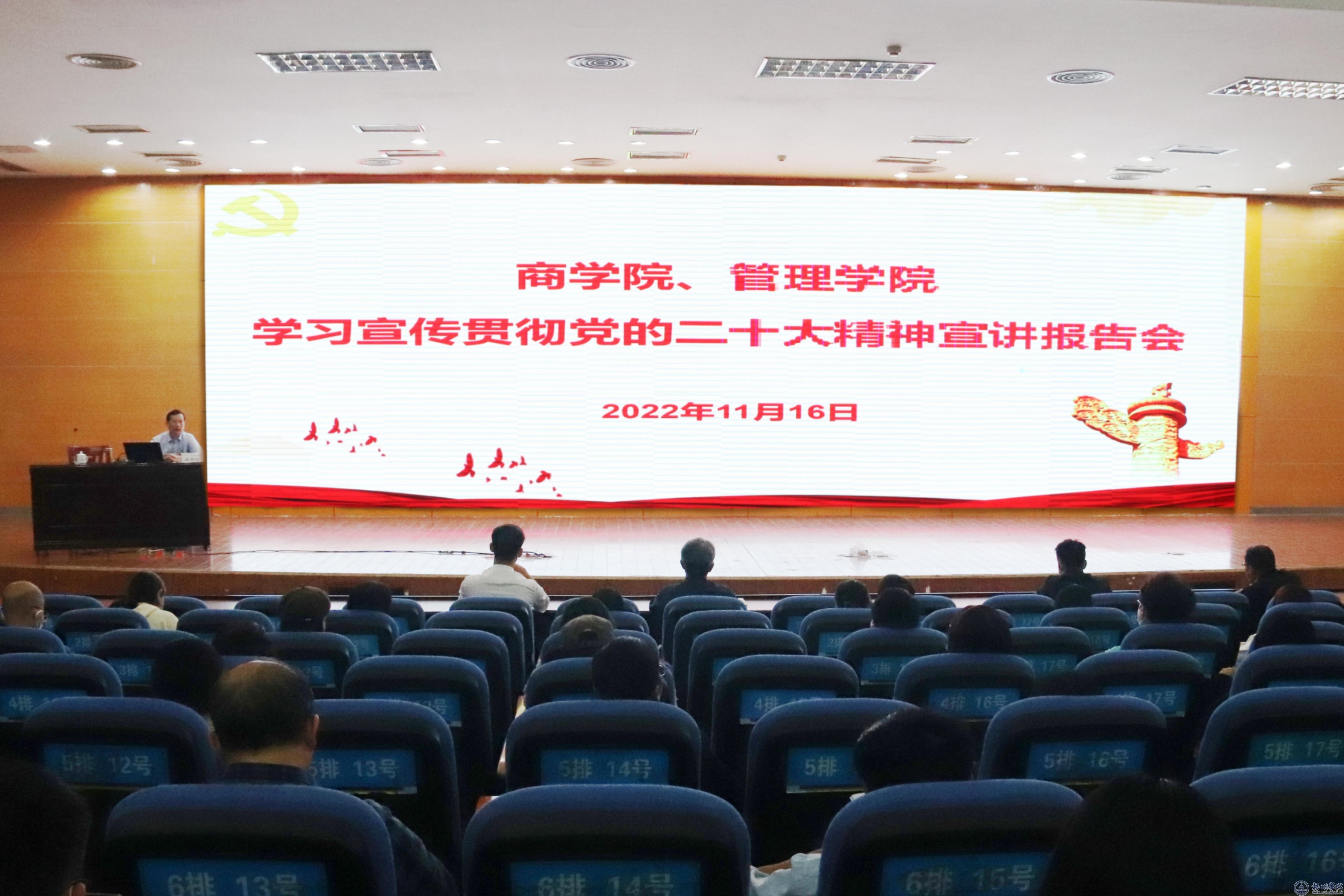 11月16日下午,麻新纯副校长在明理楼一楼学术报告厅作了题为《学深悟透党的二十大精神全面落实新时代立德树人根本任务》的宣讲报告。商学院、管理学院共371名师生党员参加学习。宣讲会由商学院党委书记莫世有主持。