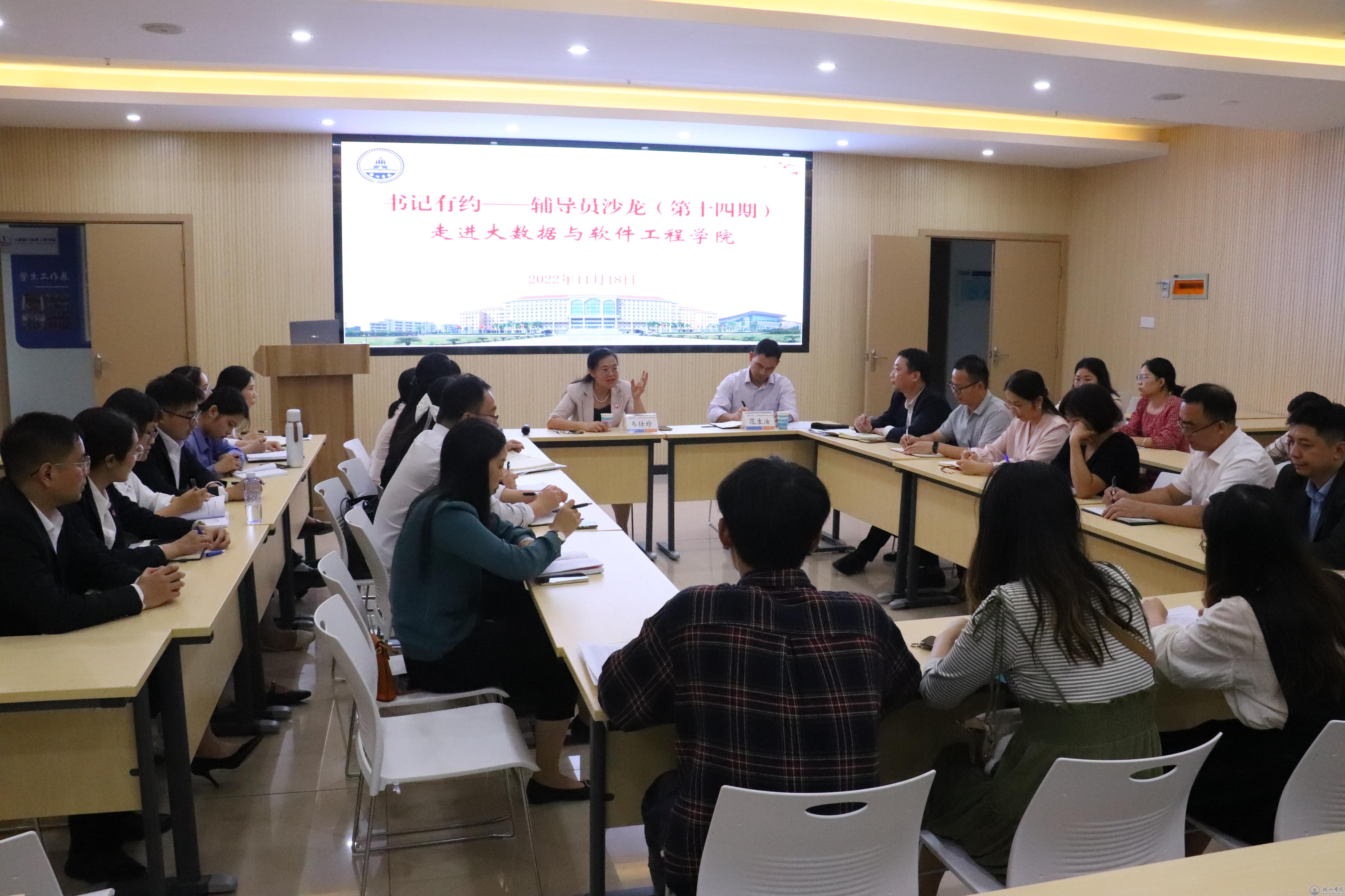11月18日下午,学校在明科楼九楼举行“书记有约”——走进大数据与软件工程学院座谈会,学校党委书记韦仕珍,党委常委、副校长范生汝,学生工作部(处)负责人、各二级学院分管学生工作负责人,大数据与软件工程学院负责人及全体辅导员及各二级学院辅导员代表参与会议。