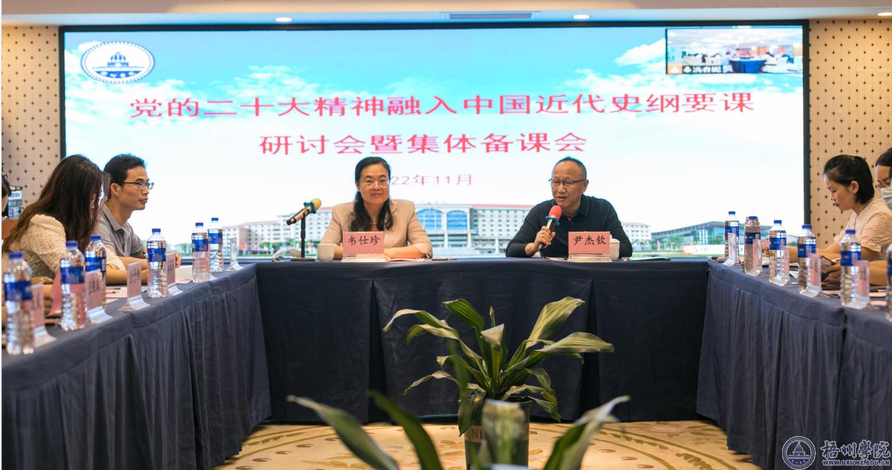 为学习、宣传、贯彻党的二十大精神,提升全区高校中国近现代史纲要教师的政治素质和教学水平,促进党的二十大精神与中国近现代史纲要课程的有效融合,11月19-20日,马克思主义学院在梧州举办了“党的二十大精神融入中国近现代纲要研讨会暨集体备课会”。学校党委书记韦仕珍出席研讨会暨集体备课会并致辞。