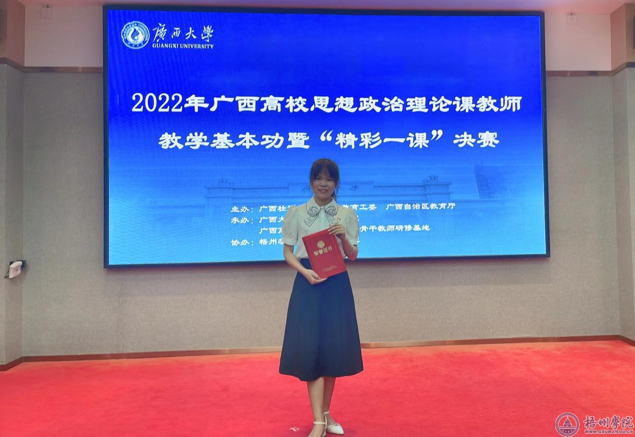 根据《自治区教育厅关于公布2022年广西高校思想政治理论课教师教学基本功暨“精彩一课”比赛获奖名单的通知(桂教思政〔2022〕25号)》文件通知,我校教师程美慧获青年组一等奖、朱红晖获教授组二等奖。