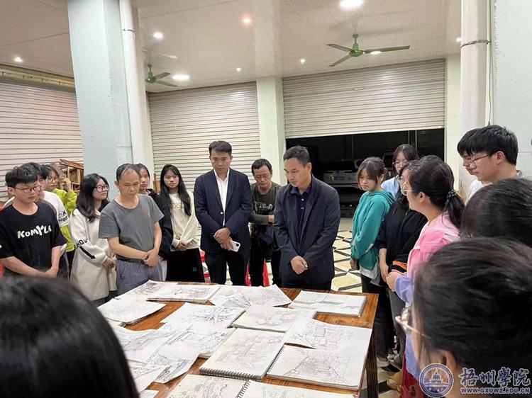 采风实践教学组就此次采风实践教学情况作了汇报。范生汝副校长一行听取了指导老师对学生采风作品的点评与指导,考察了写生基地的教学和住宿环境,与老师和同学们进行亲切的交流。范副校长对写生基地的食宿条件和教学环境,以及同学们采风实践的积极态度给予了充分的肯定,叮嘱师生们采风期间要注意个人安全和疫情防控,顺利完成采风任务。