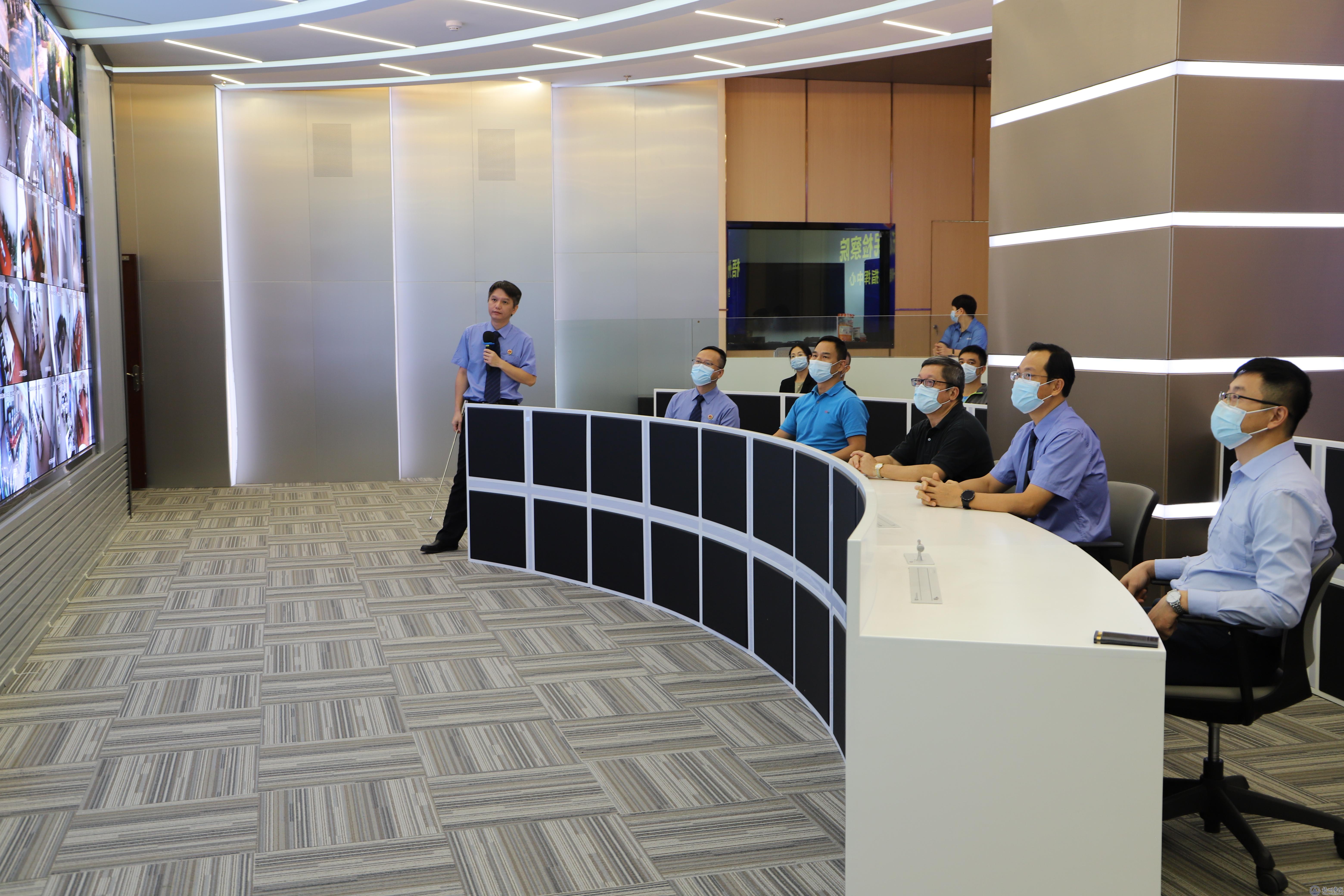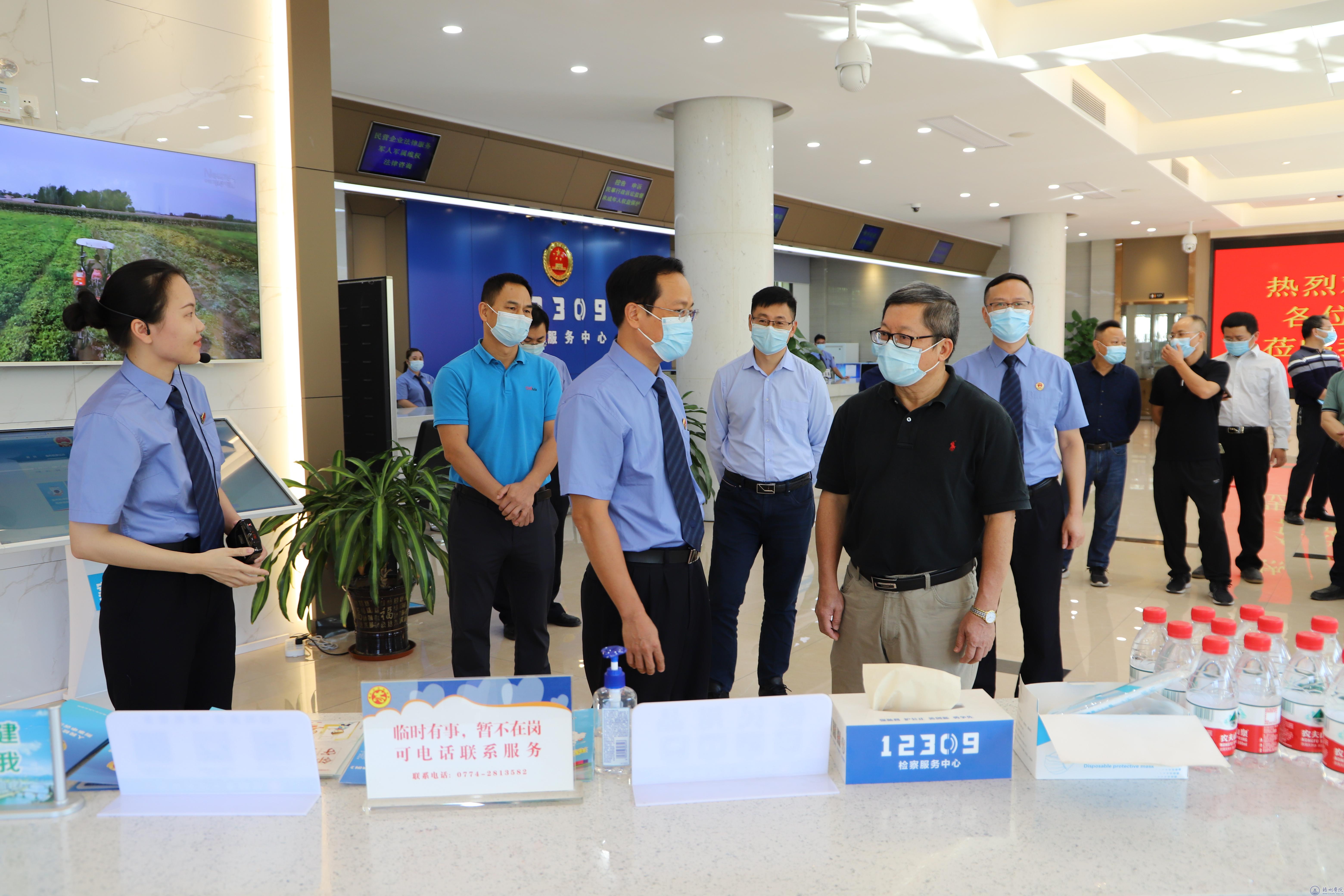 在曾军宁检察长的陪同下,杨奔校长一行先后参观了12309检察服务中心、花语廉心廉政小苑、综合指挥中心、公益诉讼快速检验中心、融媒体中心等办公办案场所,详细了解检察院办案功能区的建设使用情况及检察工作开展情况。
