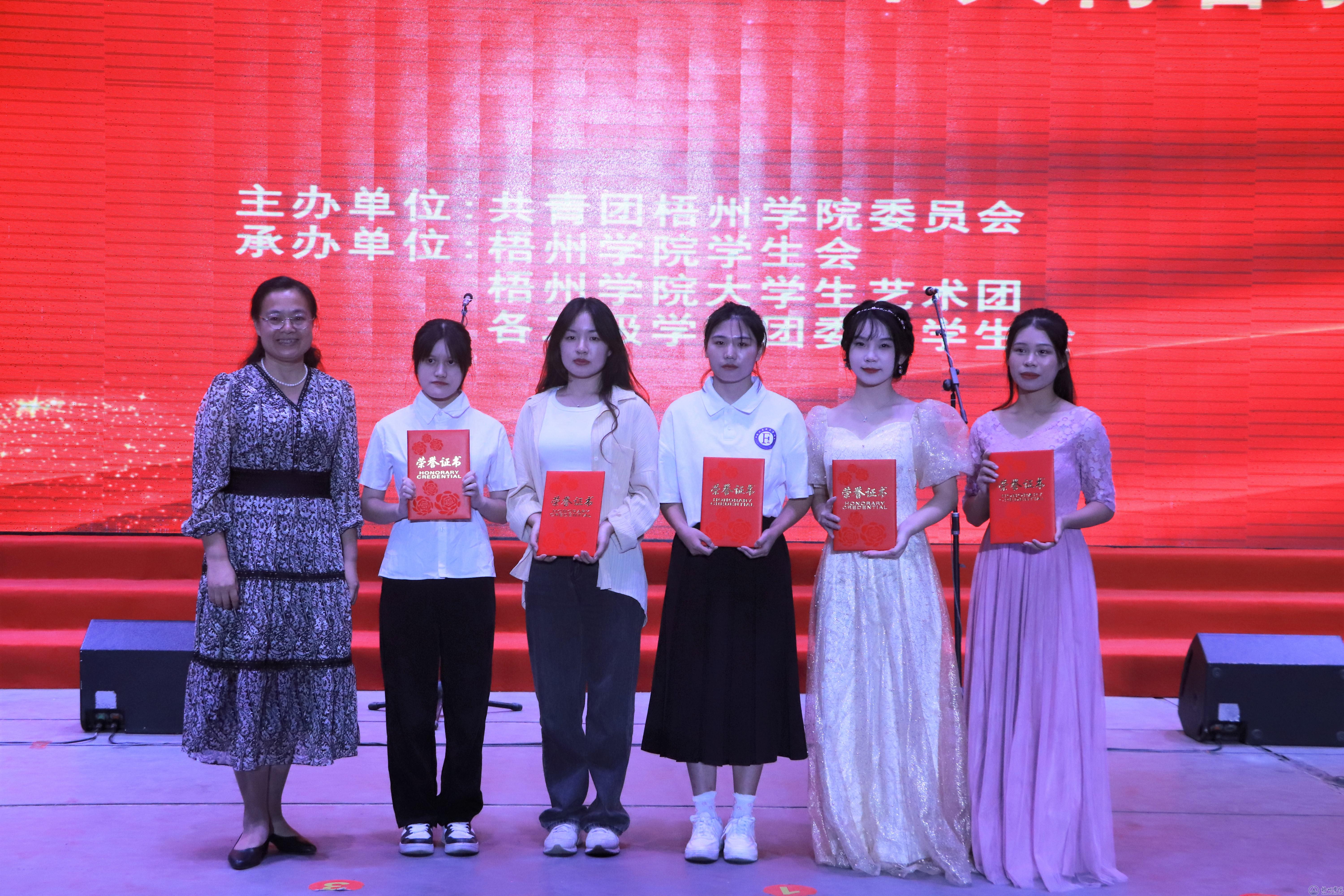 韦仕珍书记为获得青春歌会一等奖,最佳创意奖,优秀指挥奖,优秀组织奖的个人及单位颁奖。