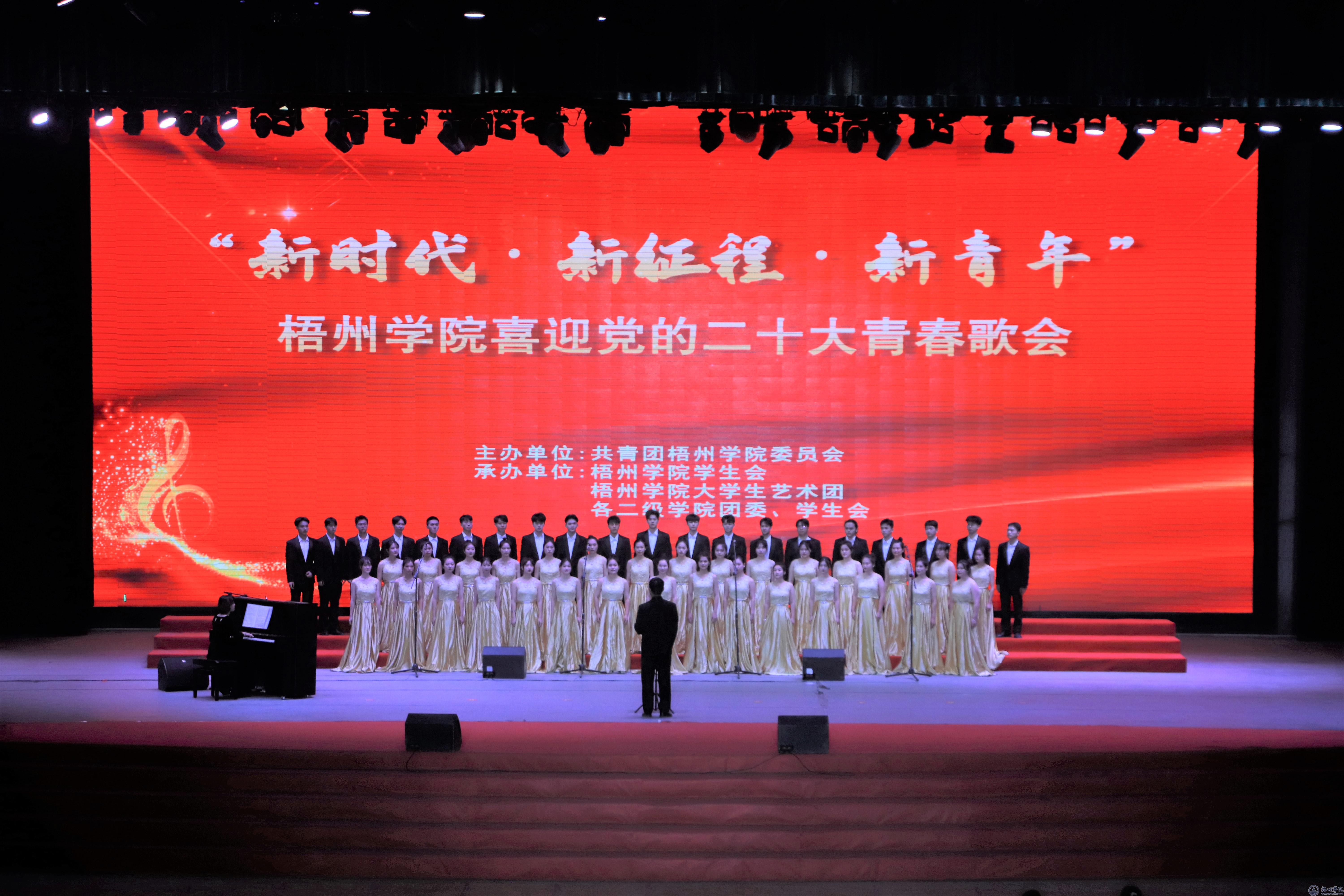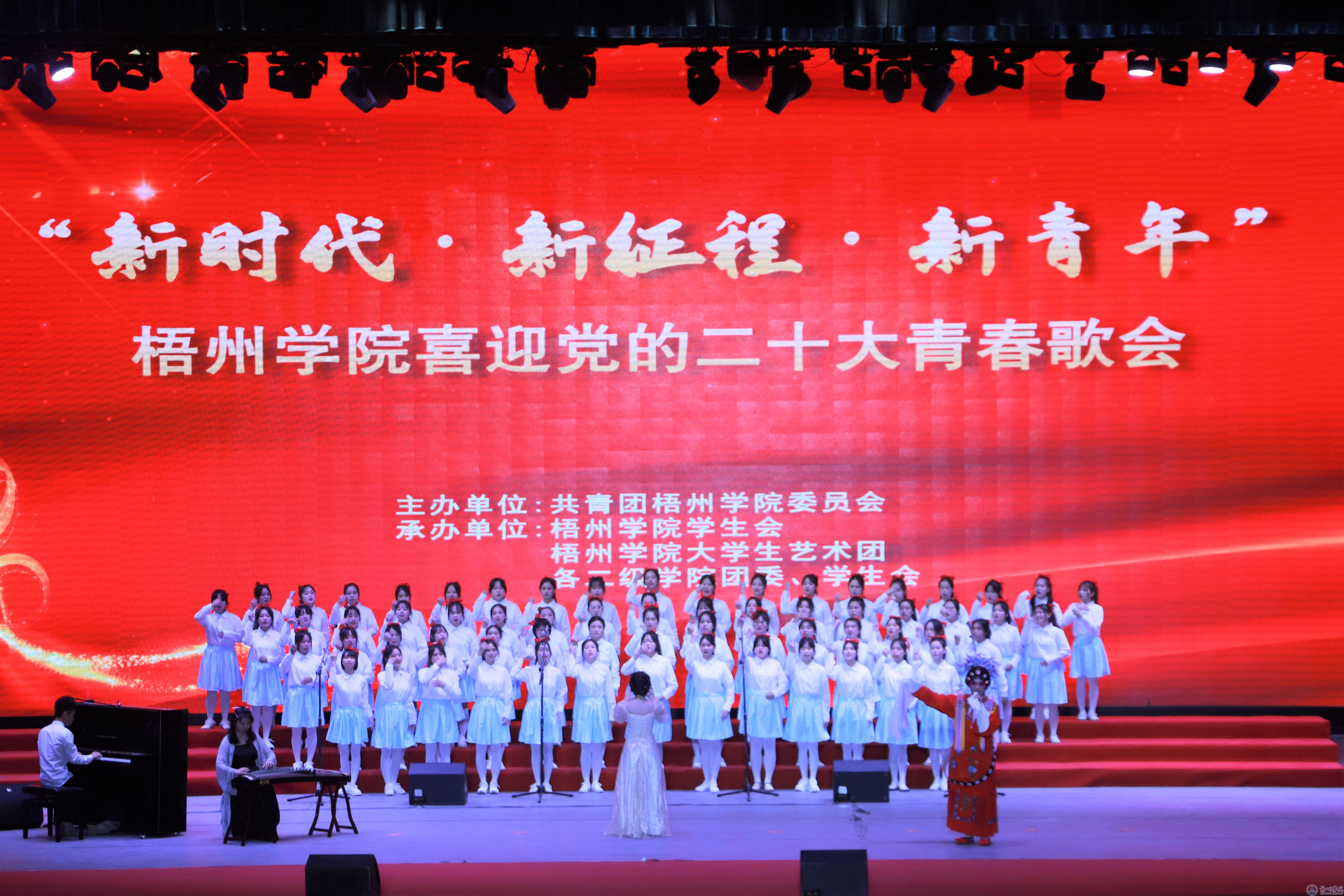 青春歌会在大学生艺术团合唱队演唱的《清流》与《夜空中最亮的星》中拉开序幕。“灯火里的中国,青春婀娜。”由外国语学院合唱团带来的《东方之珠》《灯火里的中国》为观众们描绘了温暖的万家灯火,带领大家看尽灯火漫卷的万里河山;《我的中国心》《我和我的祖国》《万疆》等经典红色旋律唱出赤诚之心,唱响炎黄血脉;《共筑中国梦》《我们都是追梦人》《强国一代有我在》歌颂了时代青年当自强的理想信念,青年应该去奋斗,去追梦。新时代的青年人整装待发,朝着梦想扬帆起航!一首《落雨大》用富有粤语特色的语言同大家感受到在下雨天时,水淹街道,家人忙碌的场景,充满了幽默风趣;《走向复兴》《没有共产党就没有新中国》《唱支山歌给党听》的演唱者们用嘹亮的歌声深情讴歌伟大的党,赞美伟大的祖国,表达了全校青年在党的引领下永远感恩党、听党话、跟党走的决心。梧院青年们以青春昂扬的姿态,诠释“请党放心,强国有我”的信念。