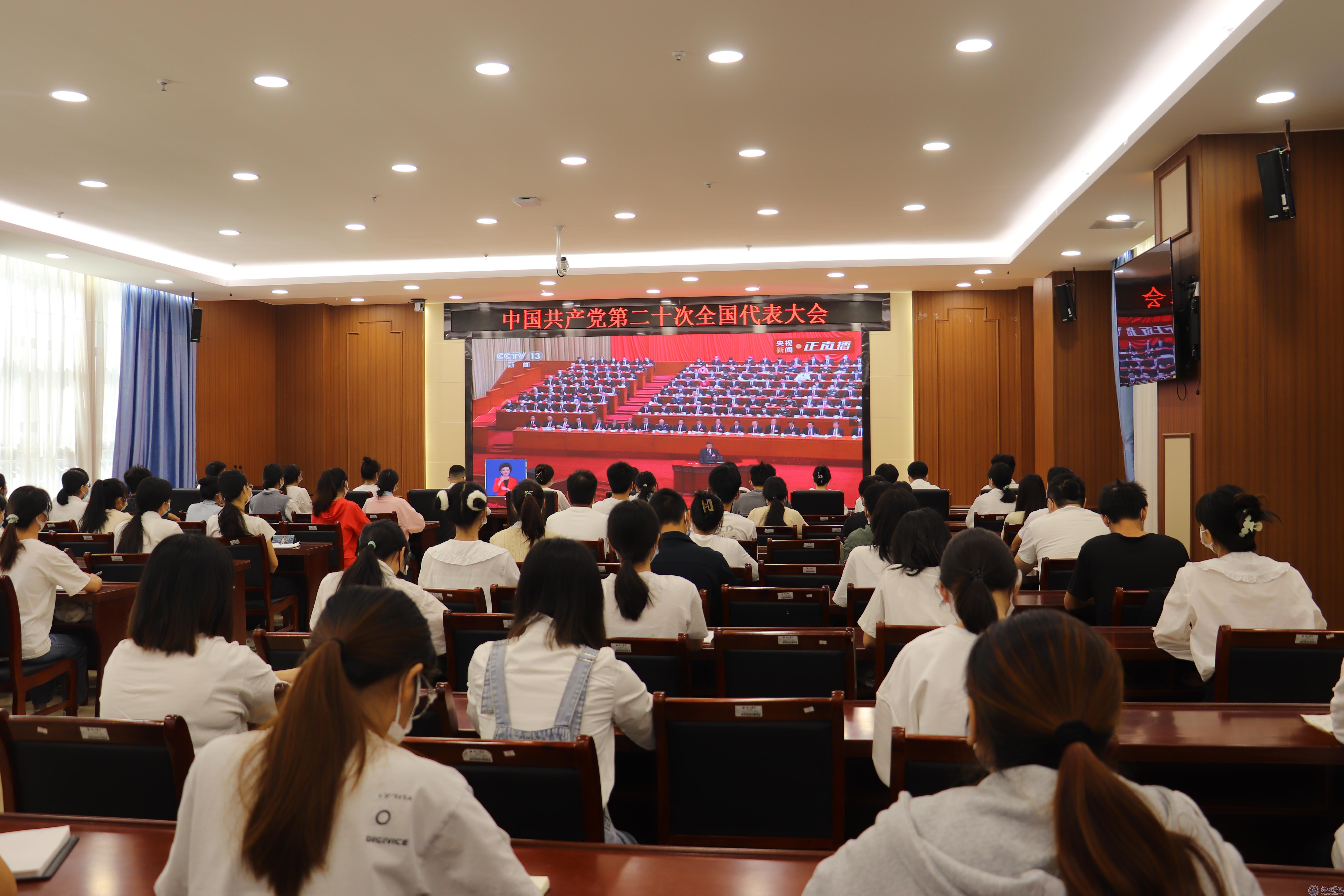会议室、教室、宿舍……,各二级党委,各单位、各部门组织师生通过互联网、手机、电视、广播等多种渠道收听收看党的二十大开幕会。