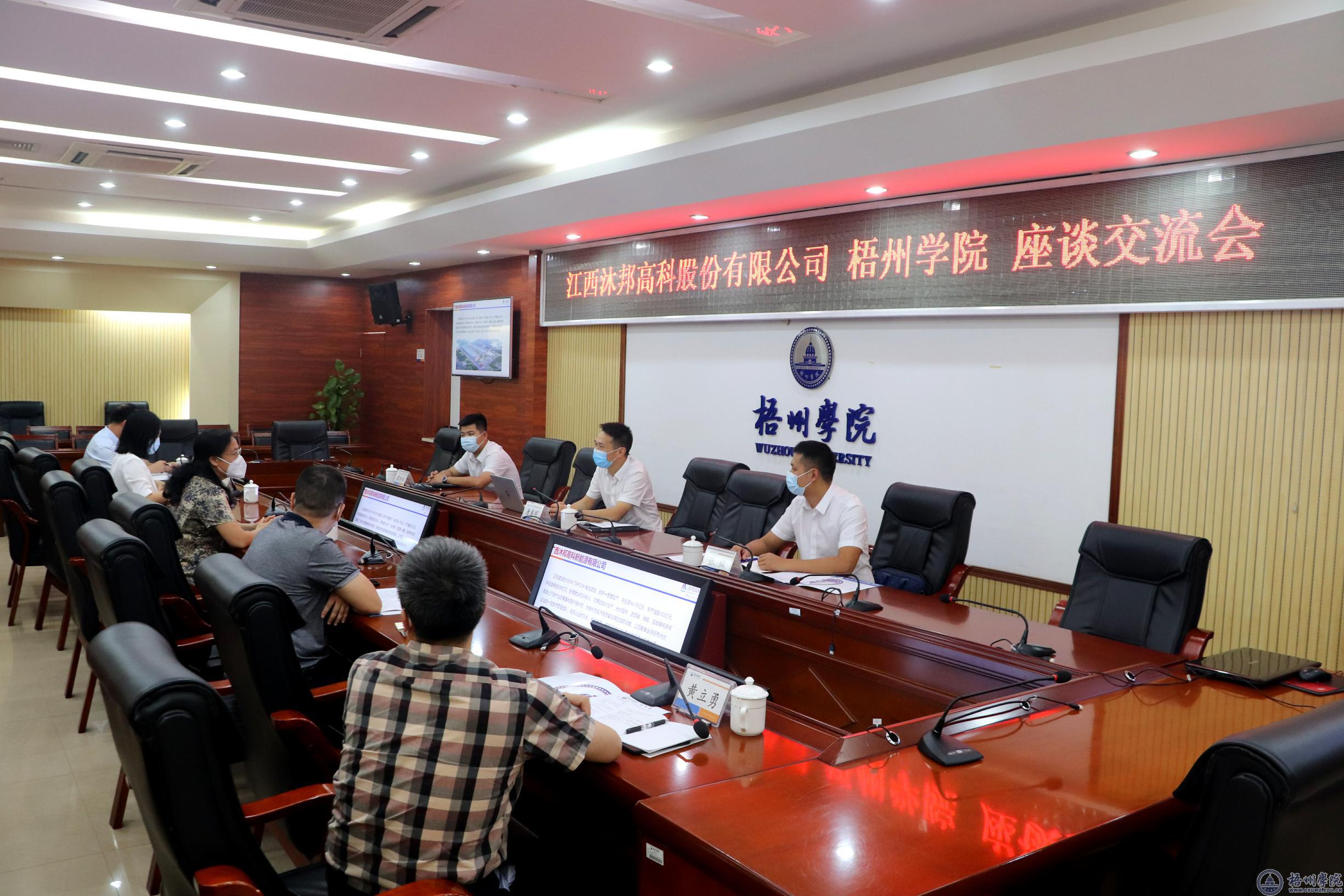 会上,大家听取了沐邦高科在梧投资的光伏电池生产基地项目建设情况介绍,就校企在科研开发、人才培养、学生实习就业等全面合作进行了充分的交流,达成了初步意向。