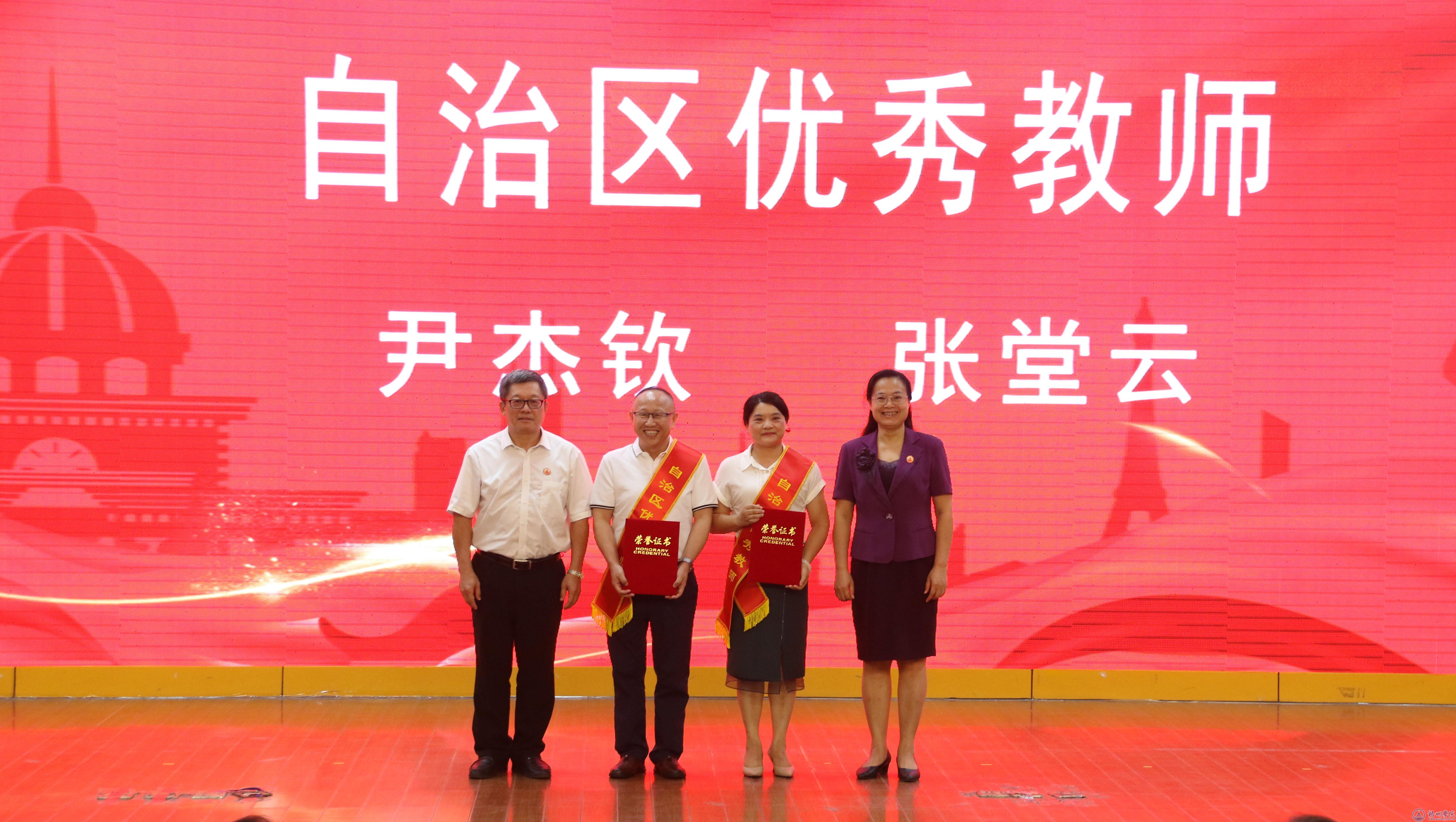 韦仕珍书记、杨奔校长为自治区优秀教师颁奖