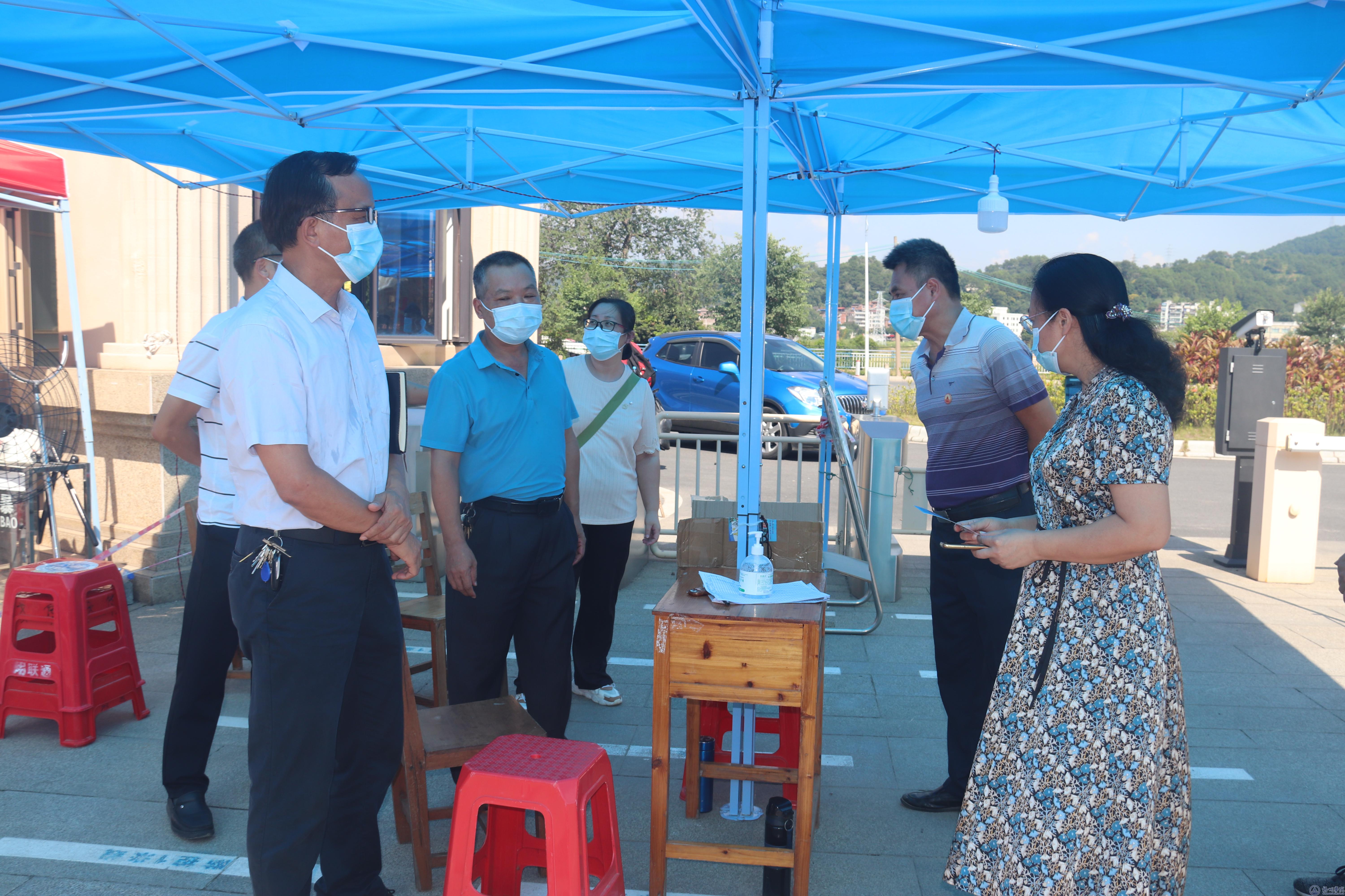 为确保秋季学期正常、安全、有序开学,进一步做好疫情防控和开学准备工作,8月28日下午,冒着高温酷热,学校党委书记韦仕珍带领两办、组织部、宣传部、人事处、国资处、后勤基建处、保卫处等部门负责人,先后来到学校东大门、食堂、公寓楼,对新学期开学前的各项准备工作进行了检查指导。