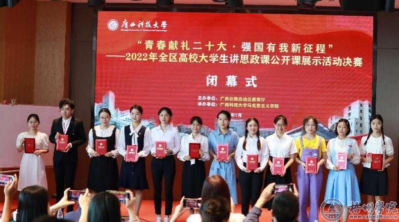 近日,我校马克思主义学院21思政班的学生龙泉伶在“青春献礼二十大•强国有我新征程”——2022年全区高校大学生讲思政课公开课展示活动决赛中获二等奖。