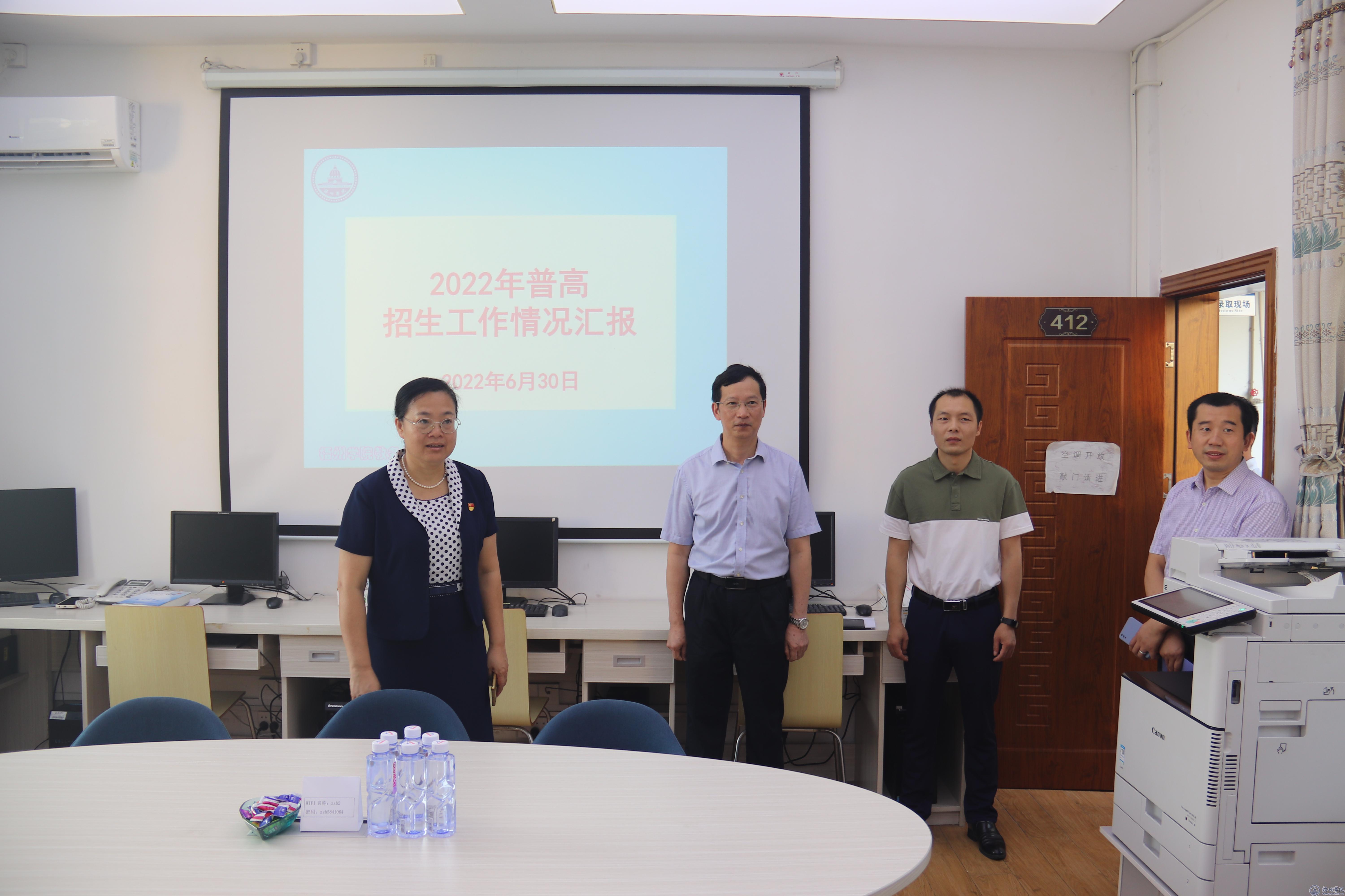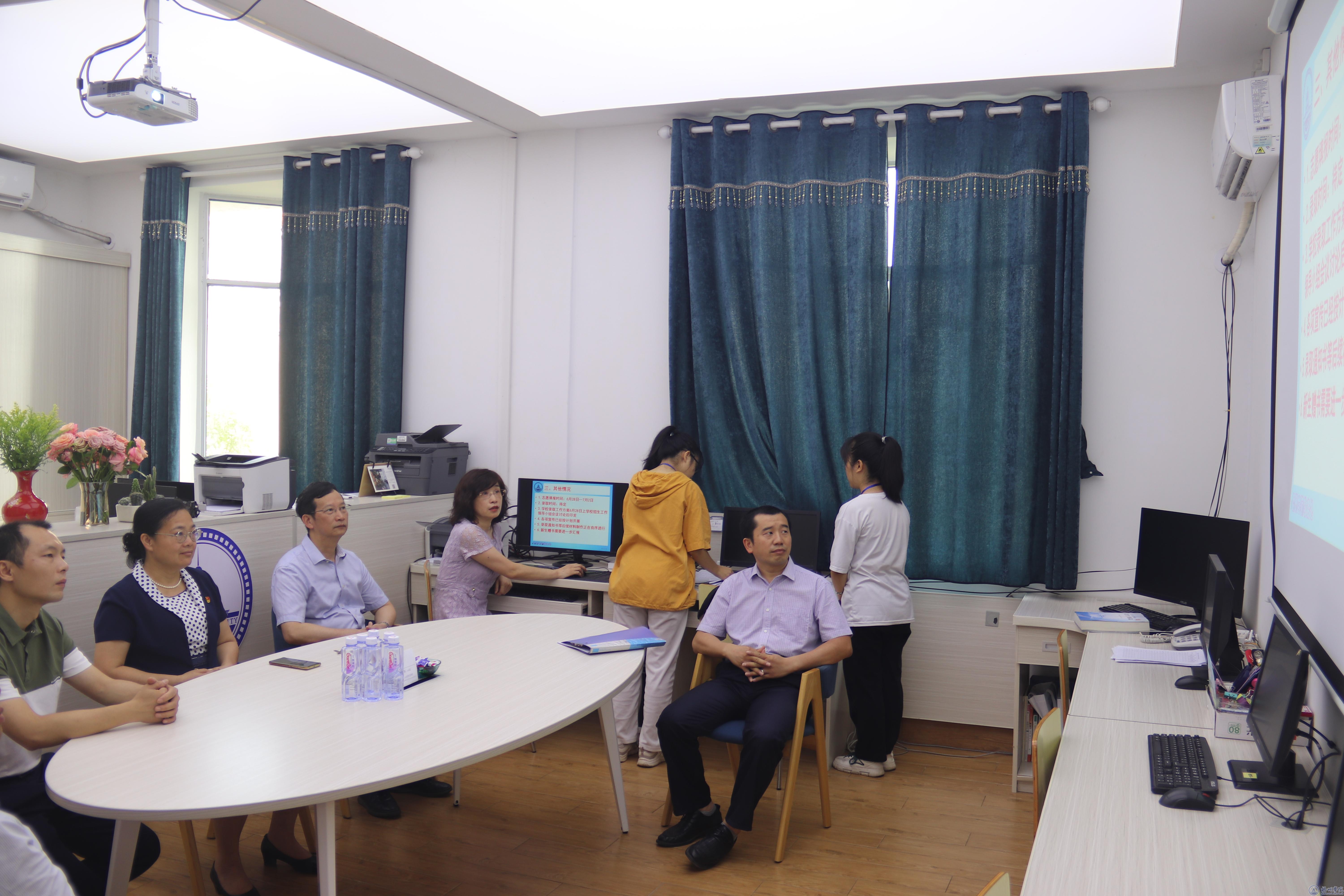 韦仕珍听取了教务处招生办负责人关于目前学校招生录取工作的简要汇报,详细了解了学校当前招生录取情况。韦仕珍强调,高考招生录取工作社会关注度高,涉及面广,事关学校的生源质量和社会声誉,要切实提高责任意识,严守纪律红线,严格执行教育部关于招生工作的文件要求,确保招生录取顺利进行;要全情投入、恪尽职守,以严谨细致、热情周到的态度为考生和家长做好服务和咨询,展现学校良好形象;要严格执行录取工作规程,增强安全意识,保证录取信息及录取现场的安全,确保招生录取工作平稳有序地开展,有条不紊、高效有序的完成我校2022年招生录取工作。