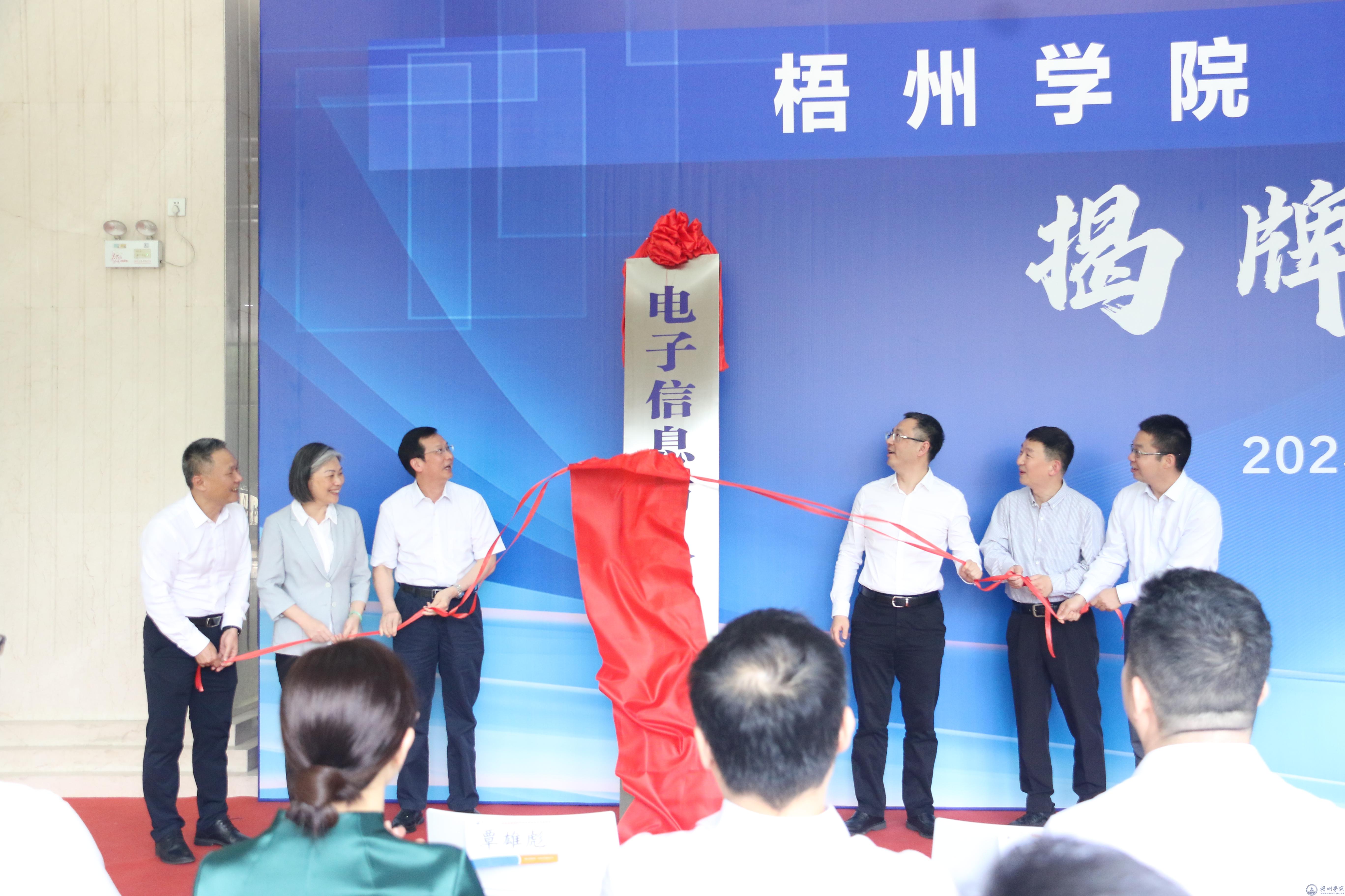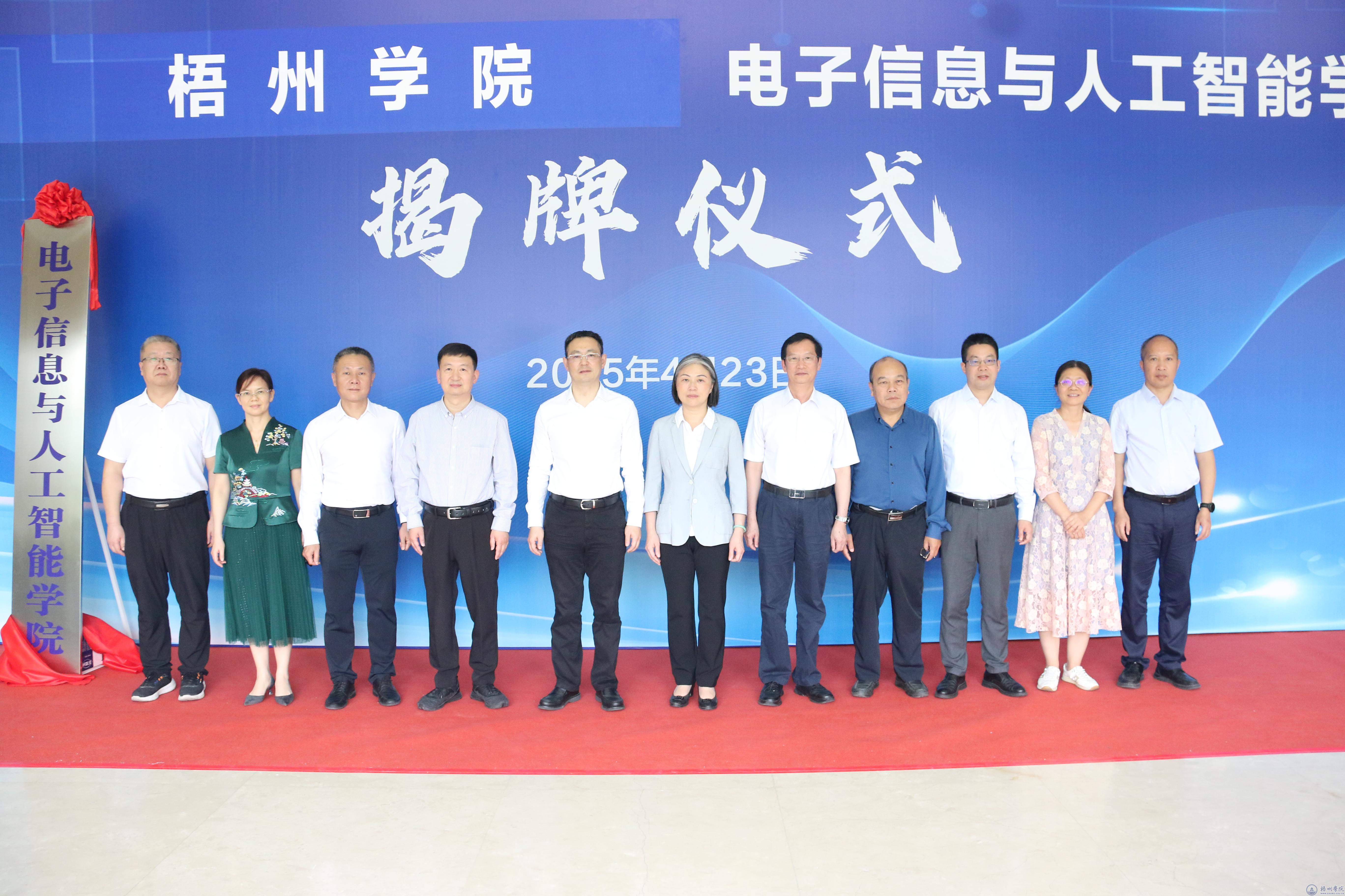 4月23日下午,学校在明科楼一楼举行电子信息与人工智能学院揭牌仪式。学校党委书记童晓晖、校长麻新纯,梧州市副市长苏颖,副校长覃雄彪,特邀嘉宾美国发明家科学院院士、加拿大工程院院士姚育东,宁波大学信息与科学学院副院长、教授邵枫出席活动。学校相关部门和二级学院负责人,电子信息与人工智能学院师生代表参加活动。
