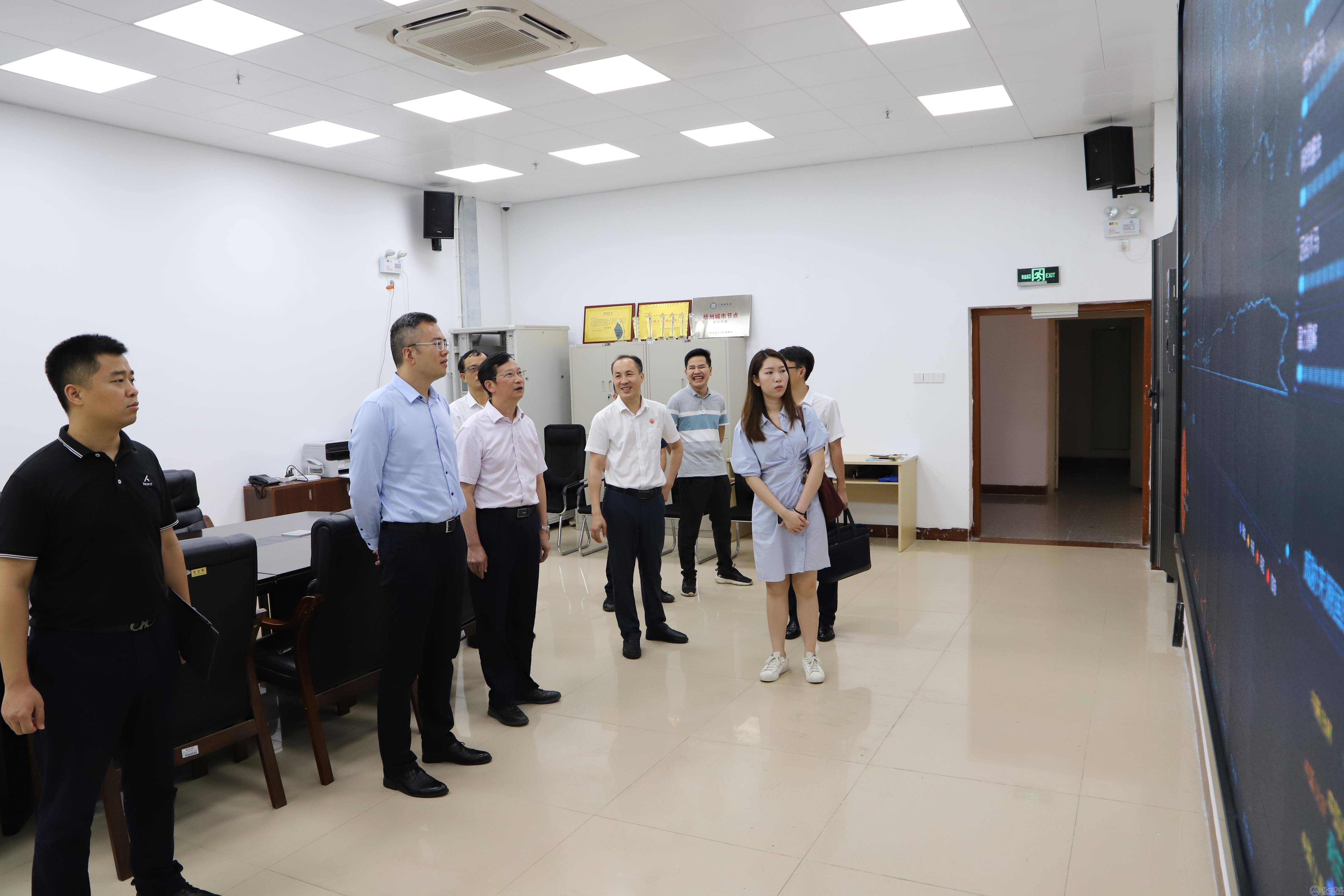 在麻新纯副校长的陪同下,刘涛一行前往明科楼,参观我校校园网络中心和广西重点实验室—机器视觉与智能控制实验室。