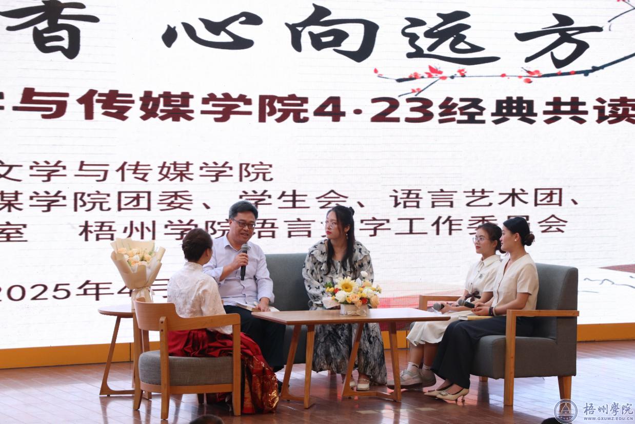 文学与传媒学院主持工作副院长段祥贵在活动总结中提到:经典不仅是专业研习的根基,更是创新思维的源泉。作为文传人,更应让“沐浴书香,心向远方”融入生活,愿大家共同做到:乘经典之舟,在书海中寻找心灵家园;握人文之舵,在时代浪潮中把握方向;扬创新之帆,在文心传道上力行致远。